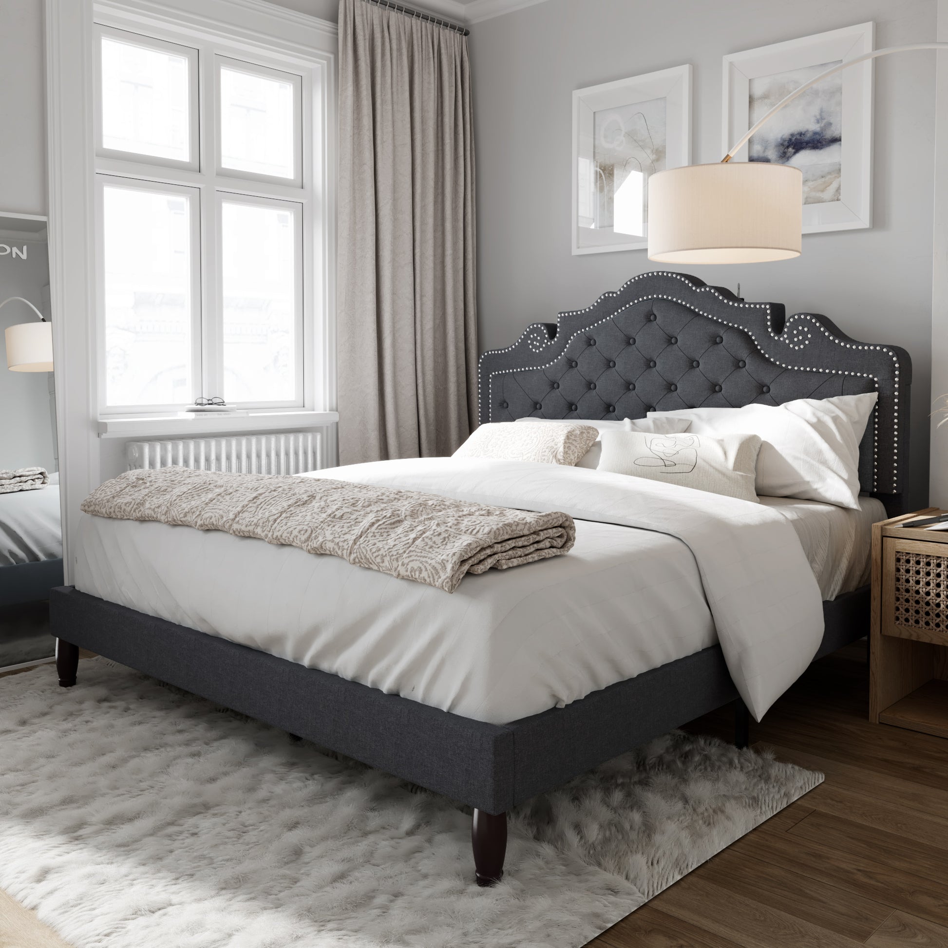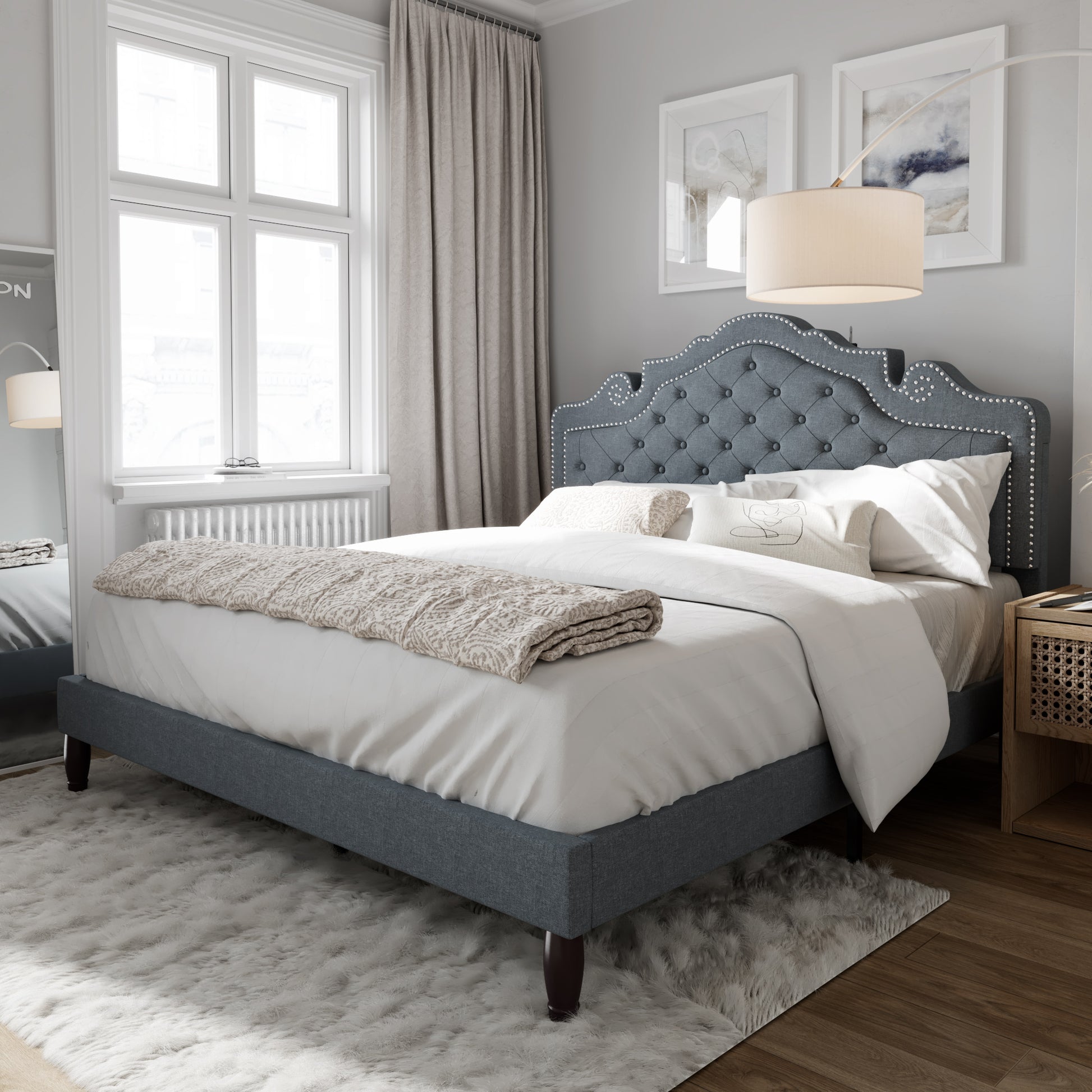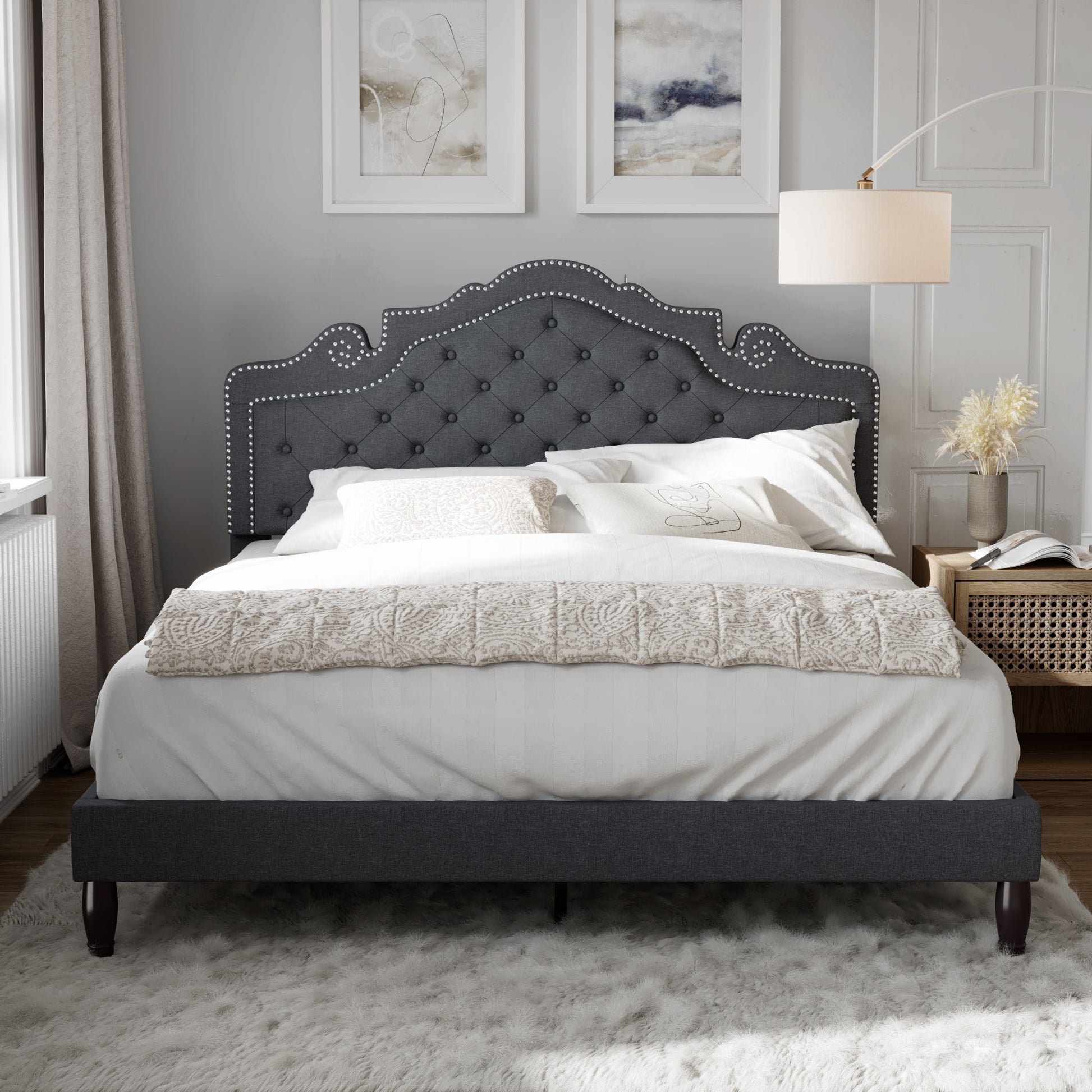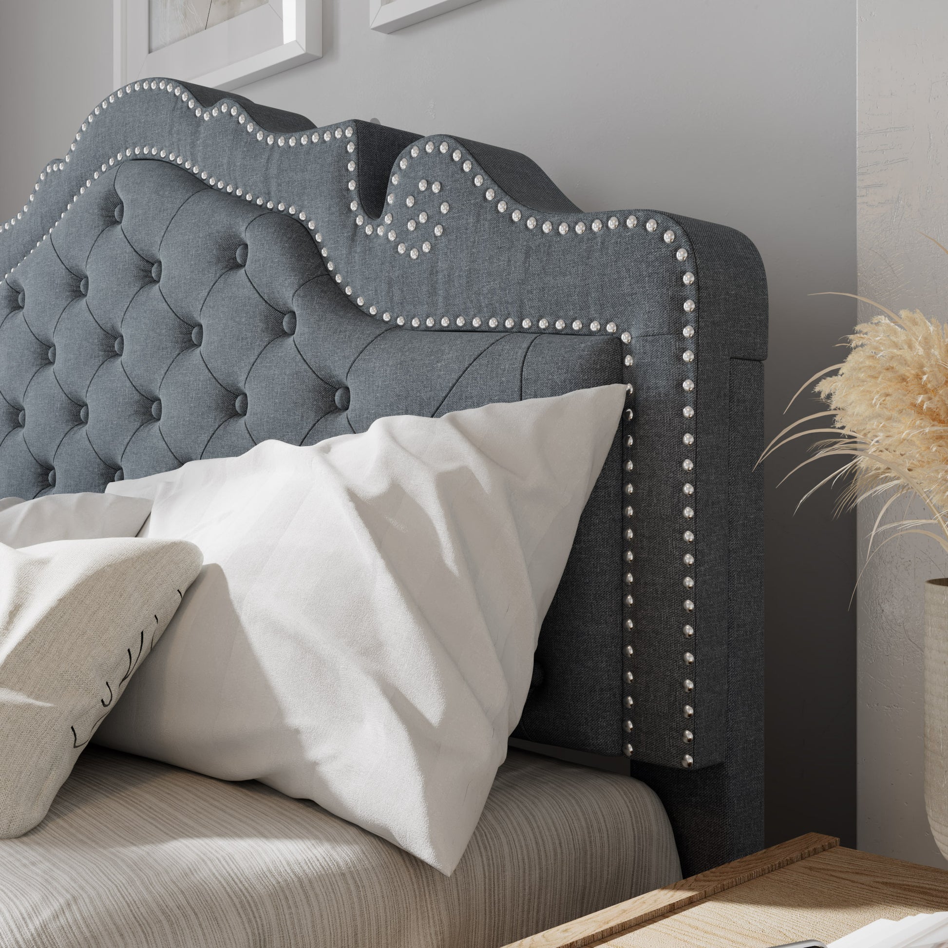 - Elegant and Minimalist look: The linen headboard features a simple yet elegant design with tufted button accents and metal rivets. With this adjustable headboard, you can choose a thicker and softer mattress to increase your comfort.