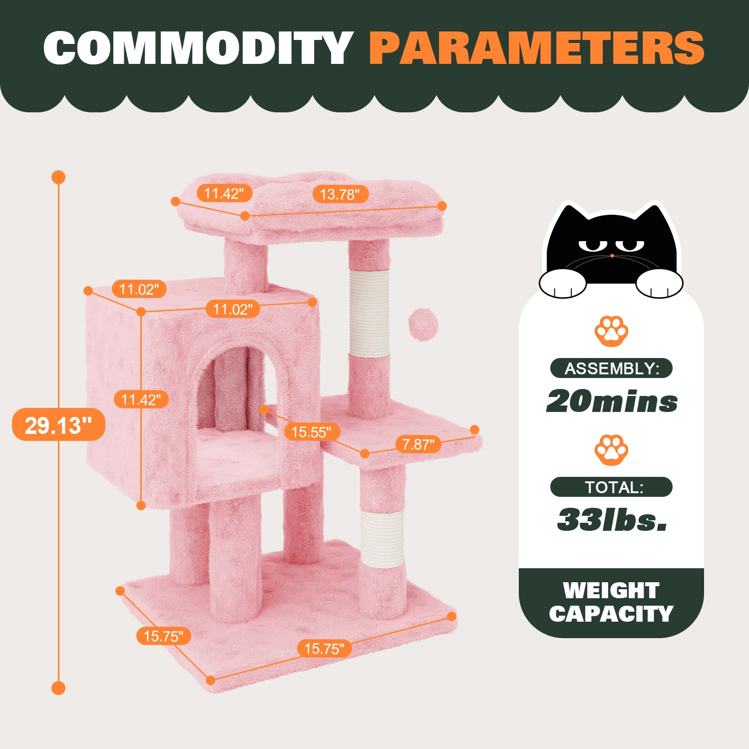 - Multi-Level Design: With multiple platforms and levels, this 29.1" tower provides climbing and resting spots, keeping cats entertained and active while saving space in your home.