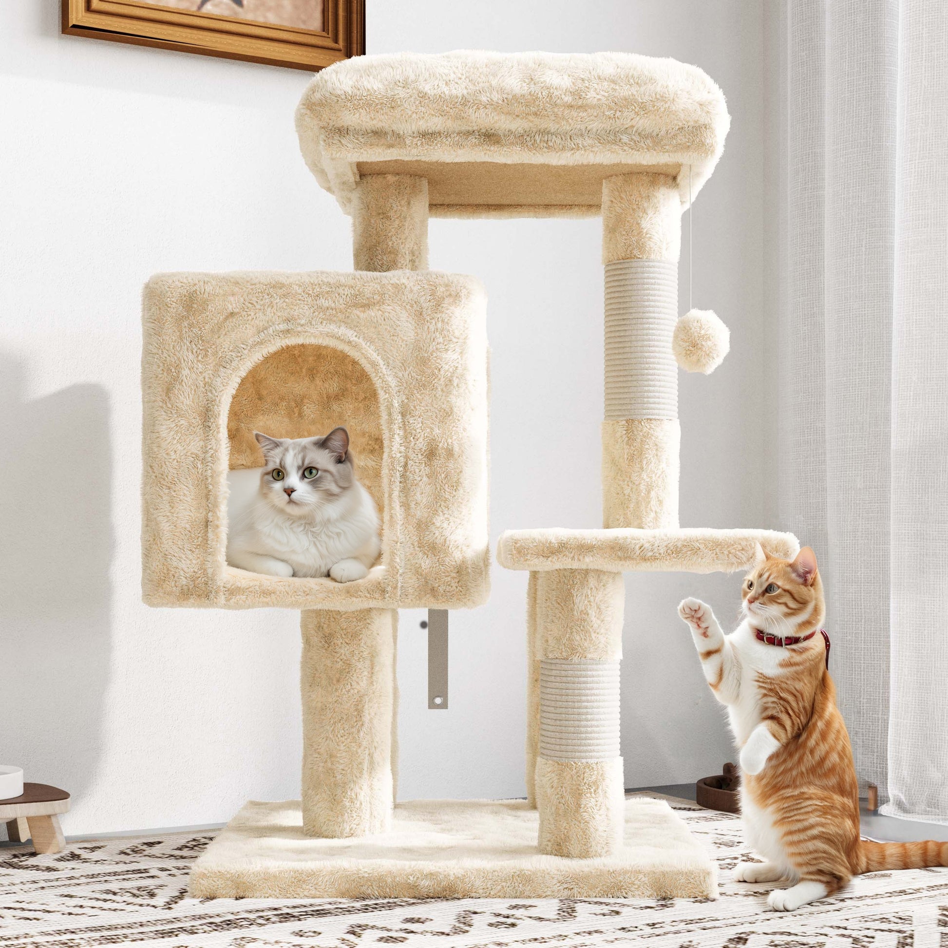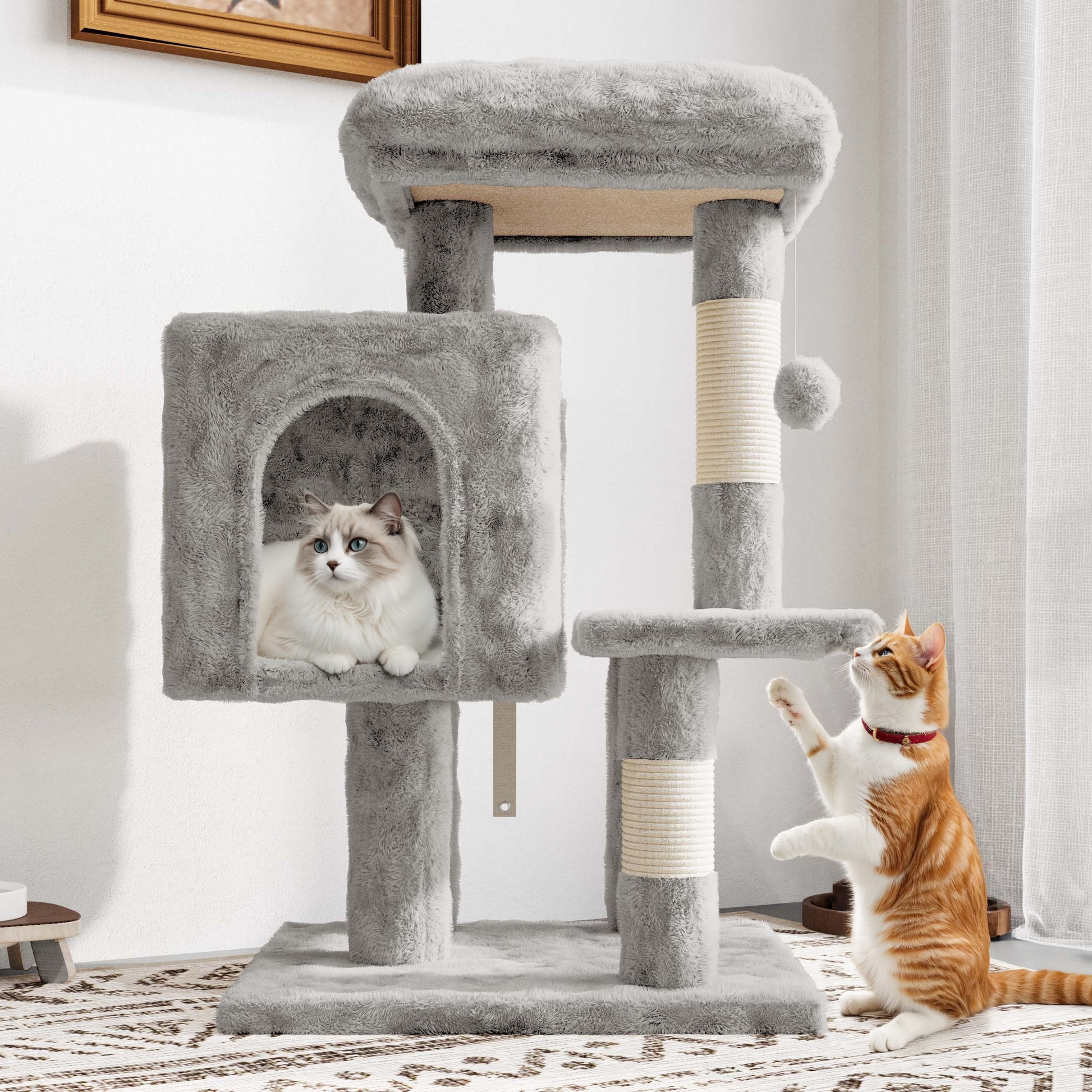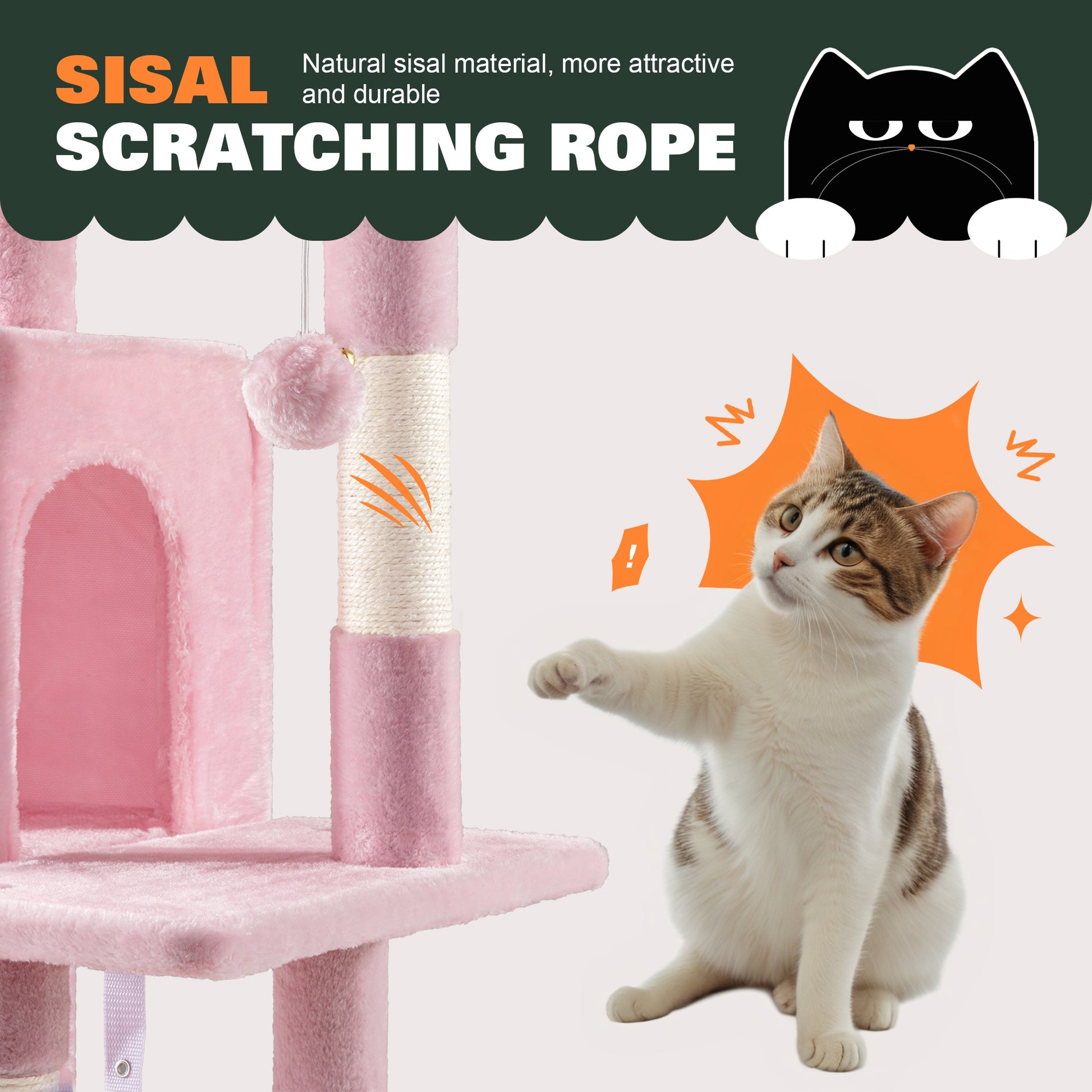 - Natural Sisal Scratching Rope: The cat tower features durable sisal rope wrapping, perfect for cats to scratch and stretch. This natural material is harmless to cats' health and more resistant to scratching.