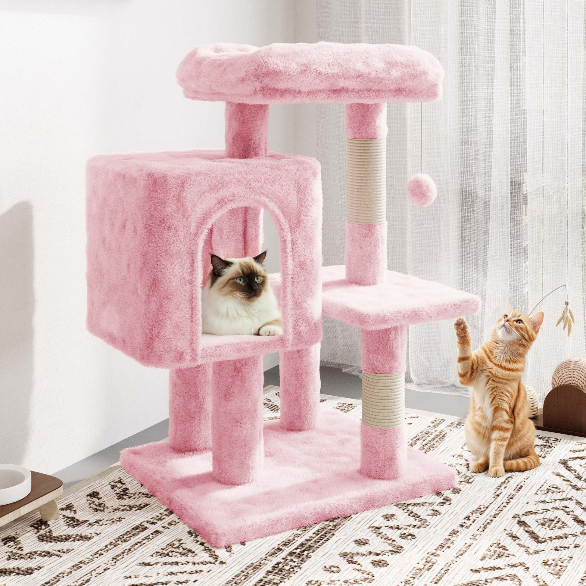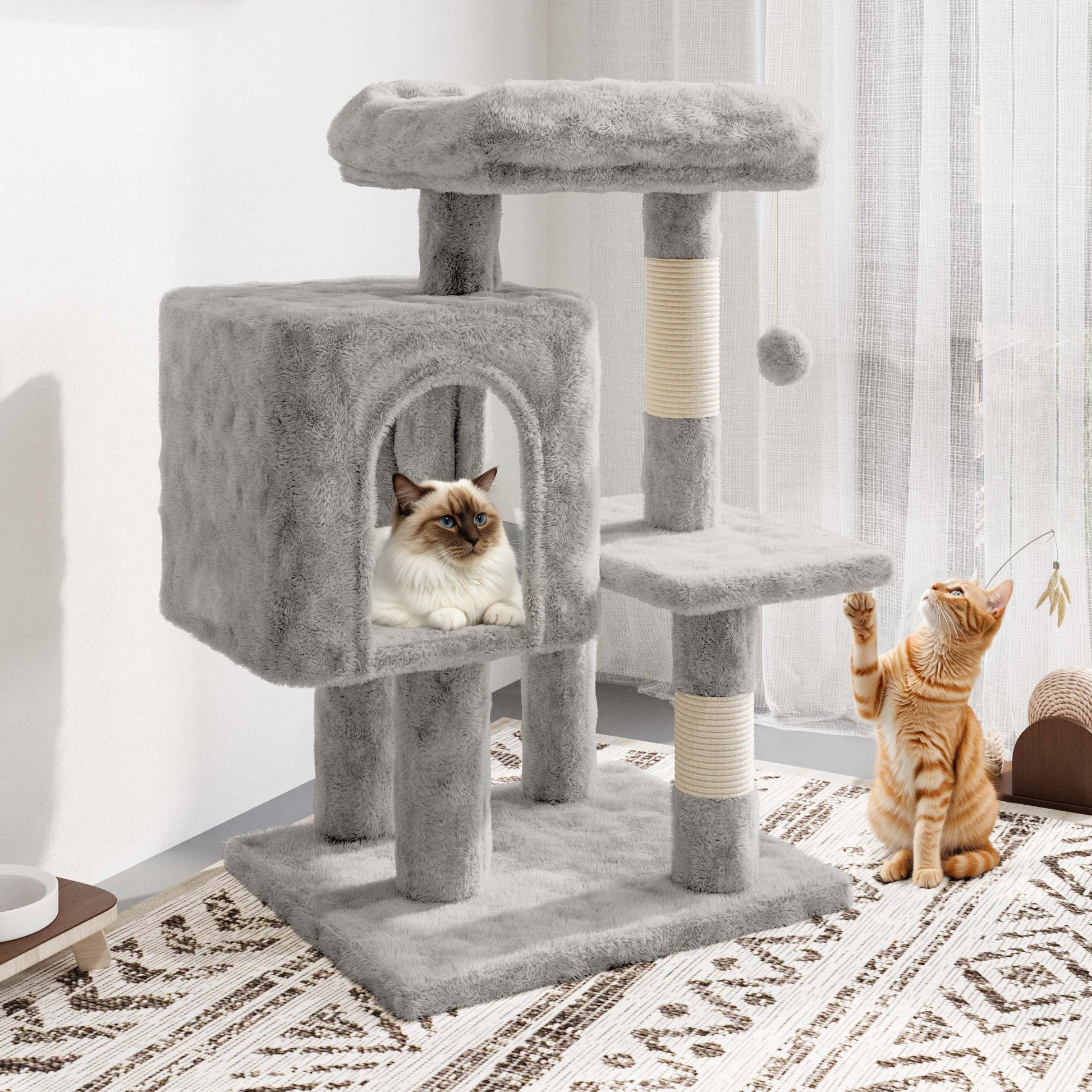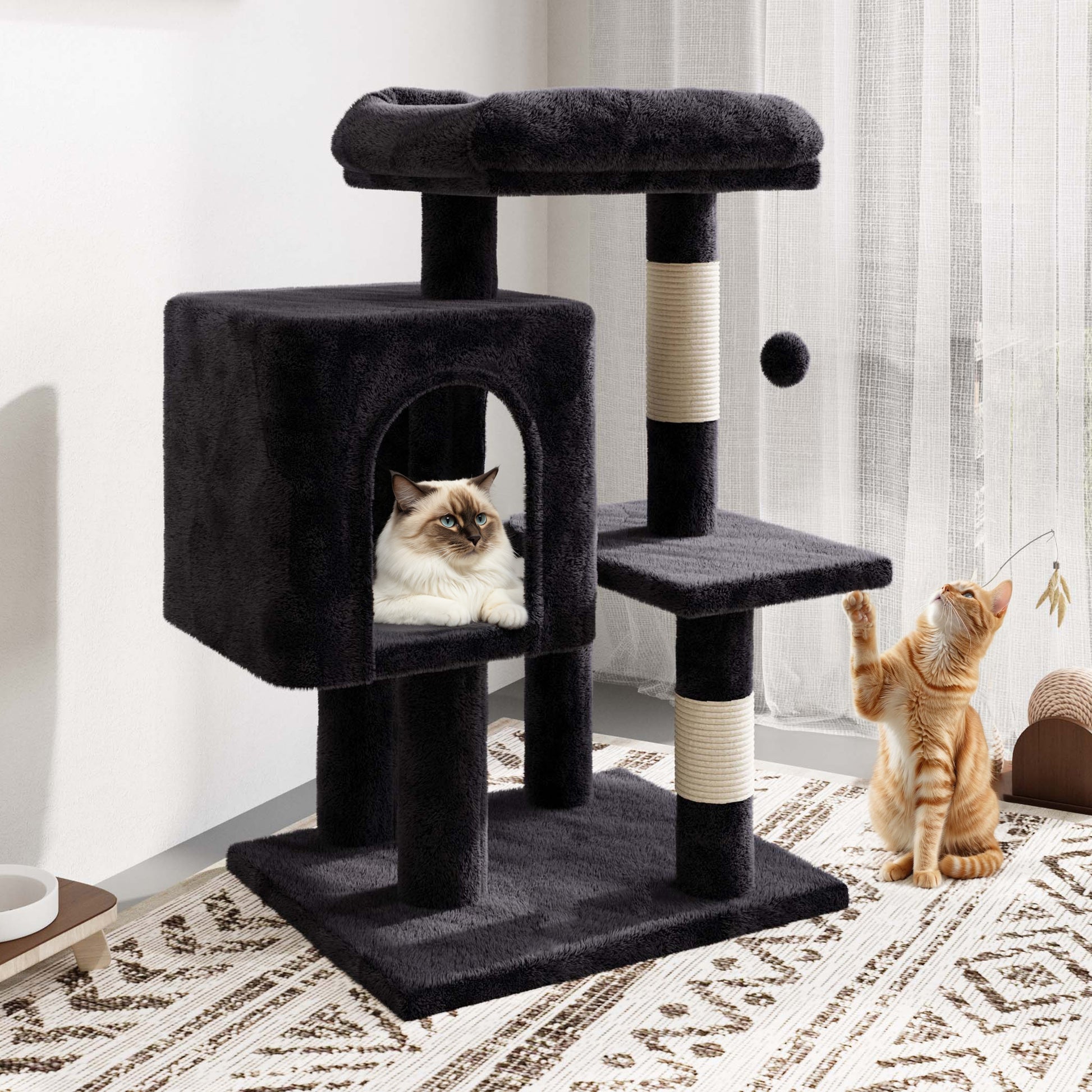 - Natural Sisal Scratching Rope: The cat tower features durable sisal rope wrapping, perfect for cats to scratch and stretch. This natural material is harmless to cats' health and more resistant to scratching.