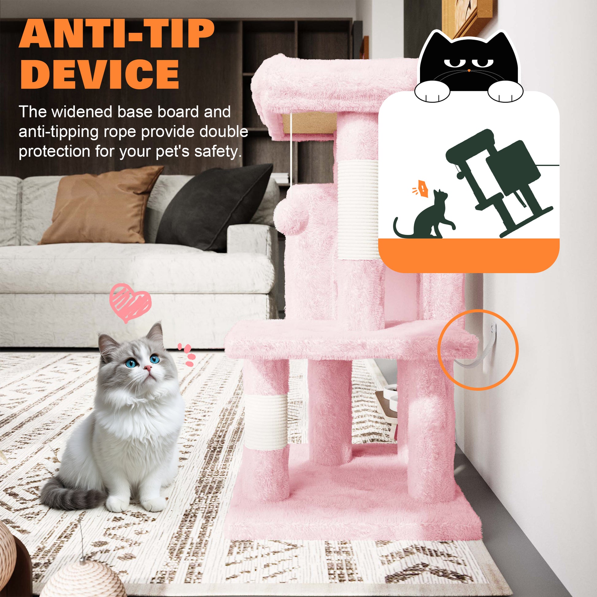 - Stable Structure: Designed with a sturdy base, reinforced posts, and an anti-tip device, the tree ensures safety during play, even for energetic cats, preventing tipping or wobbling.