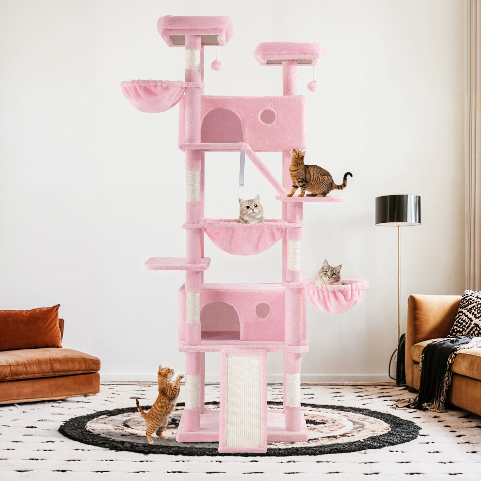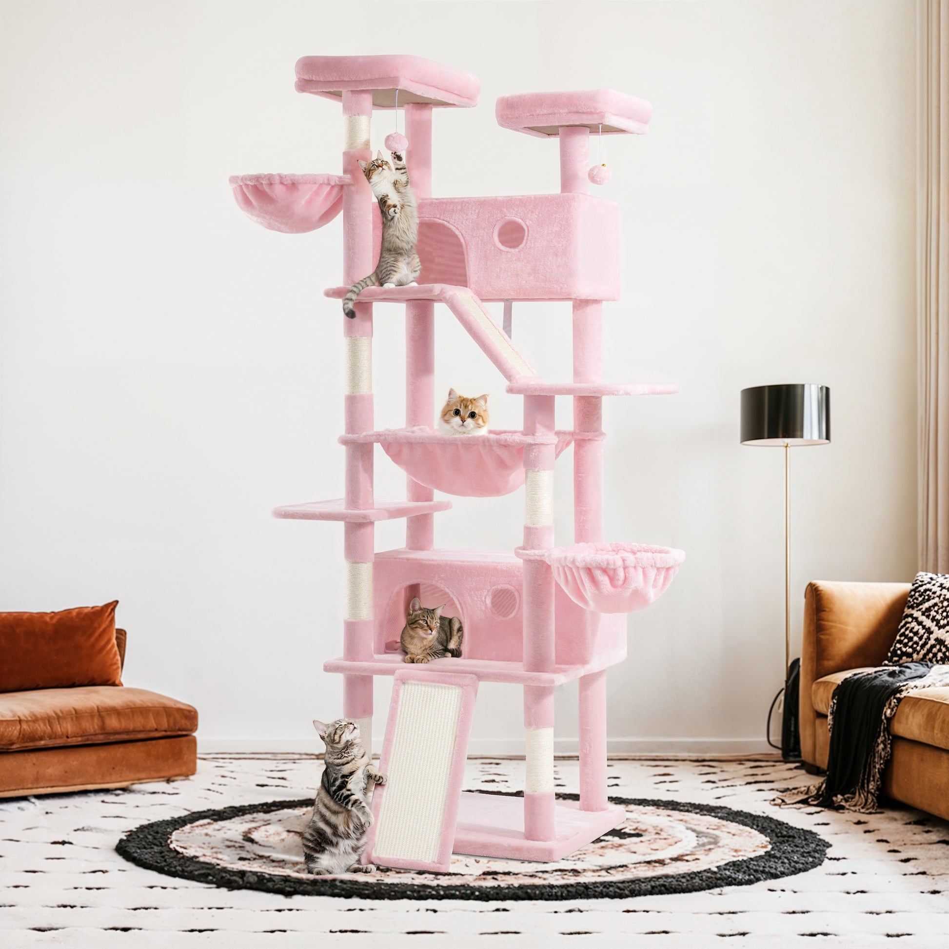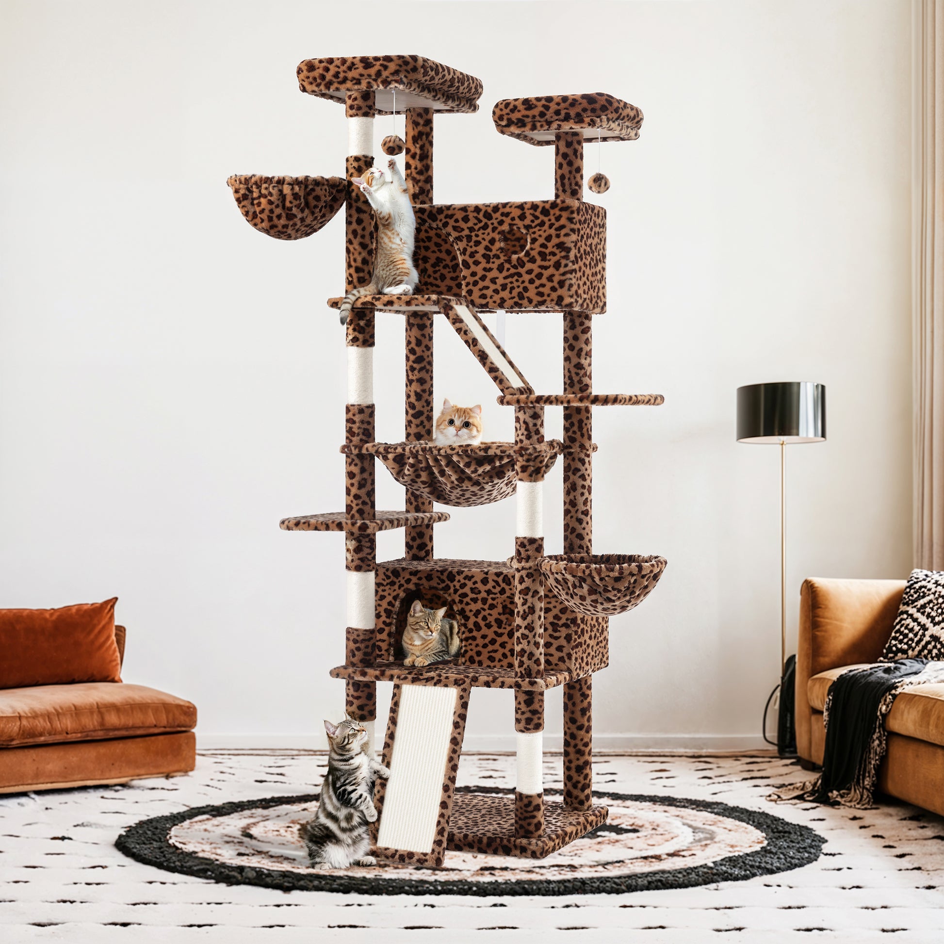 - Variety of Colors: The cat tree comes in 6 vibrant color options—pink, blue, gray, beige, white & black spot, and leopard print—allowing you to choose the one that best suits your home decor and your cat's personality.