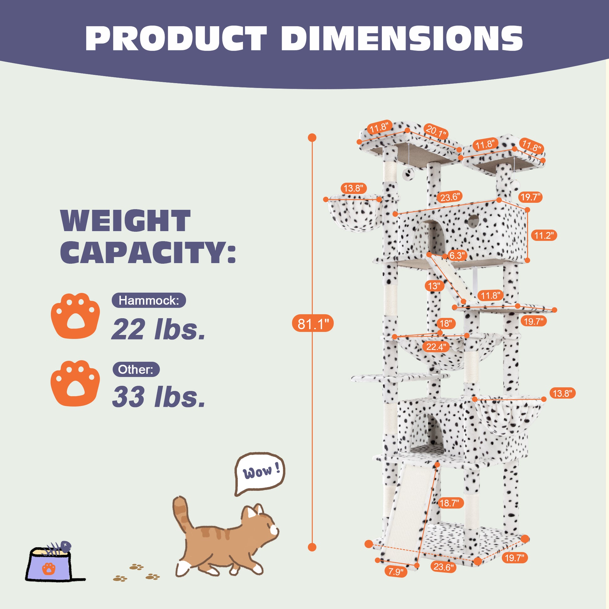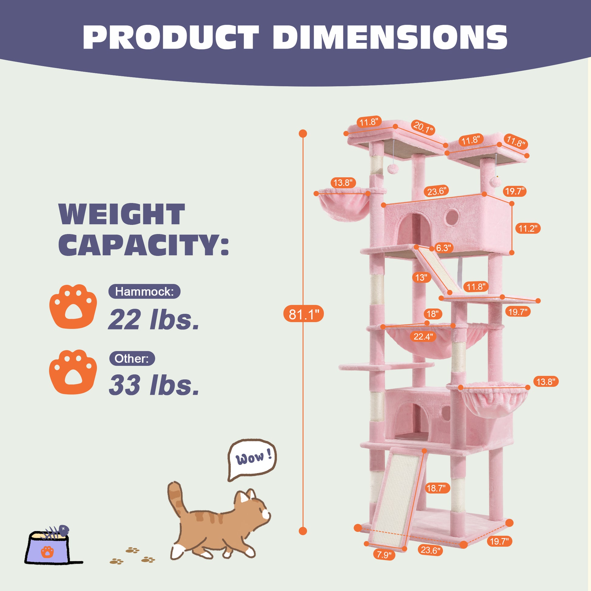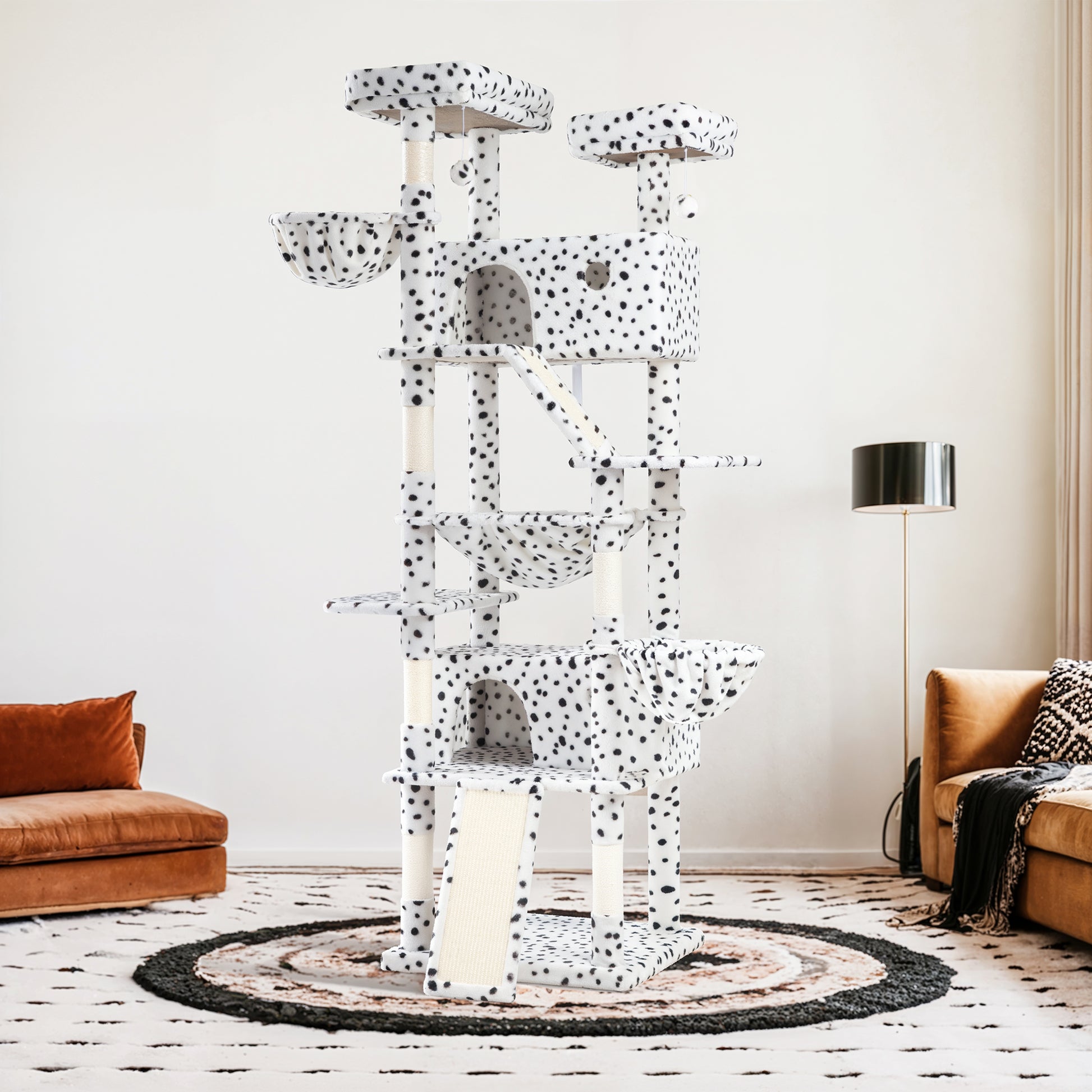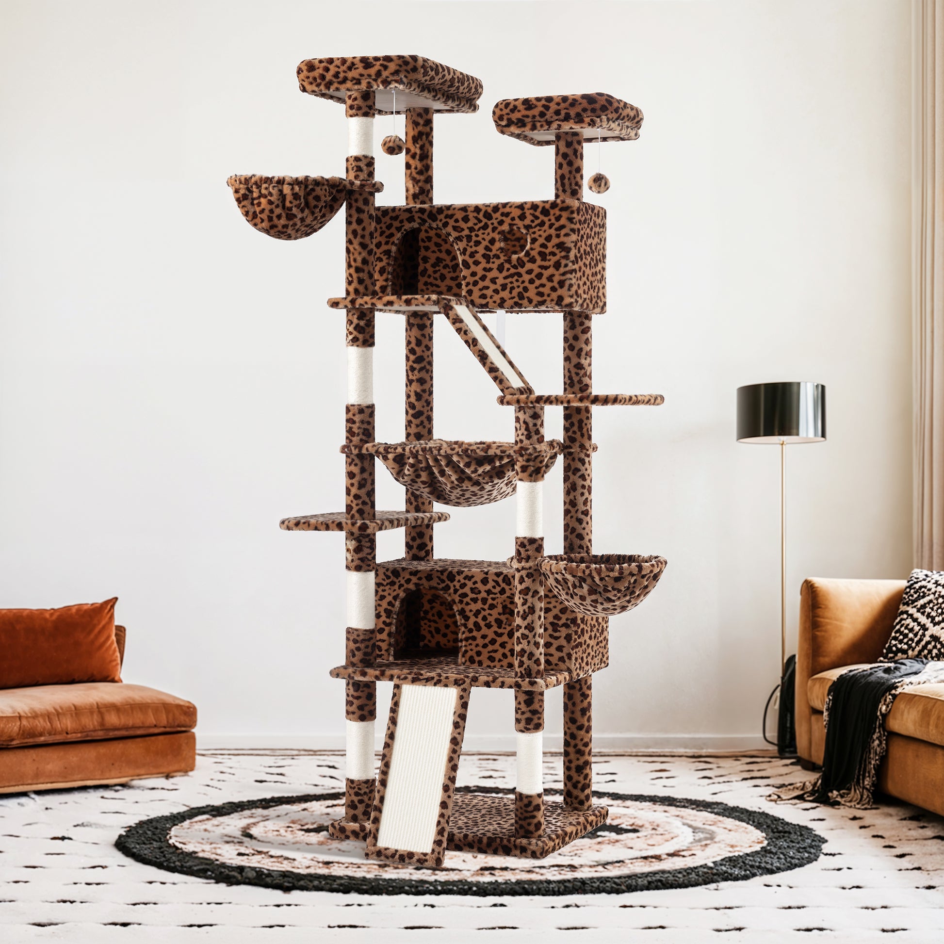 - Variety of Colors: The cat tree comes in 6 vibrant color options—pink, blue, gray, beige, white & black spot, and leopard print—allowing you to choose the one that best suits your home decor and your cat's personality.