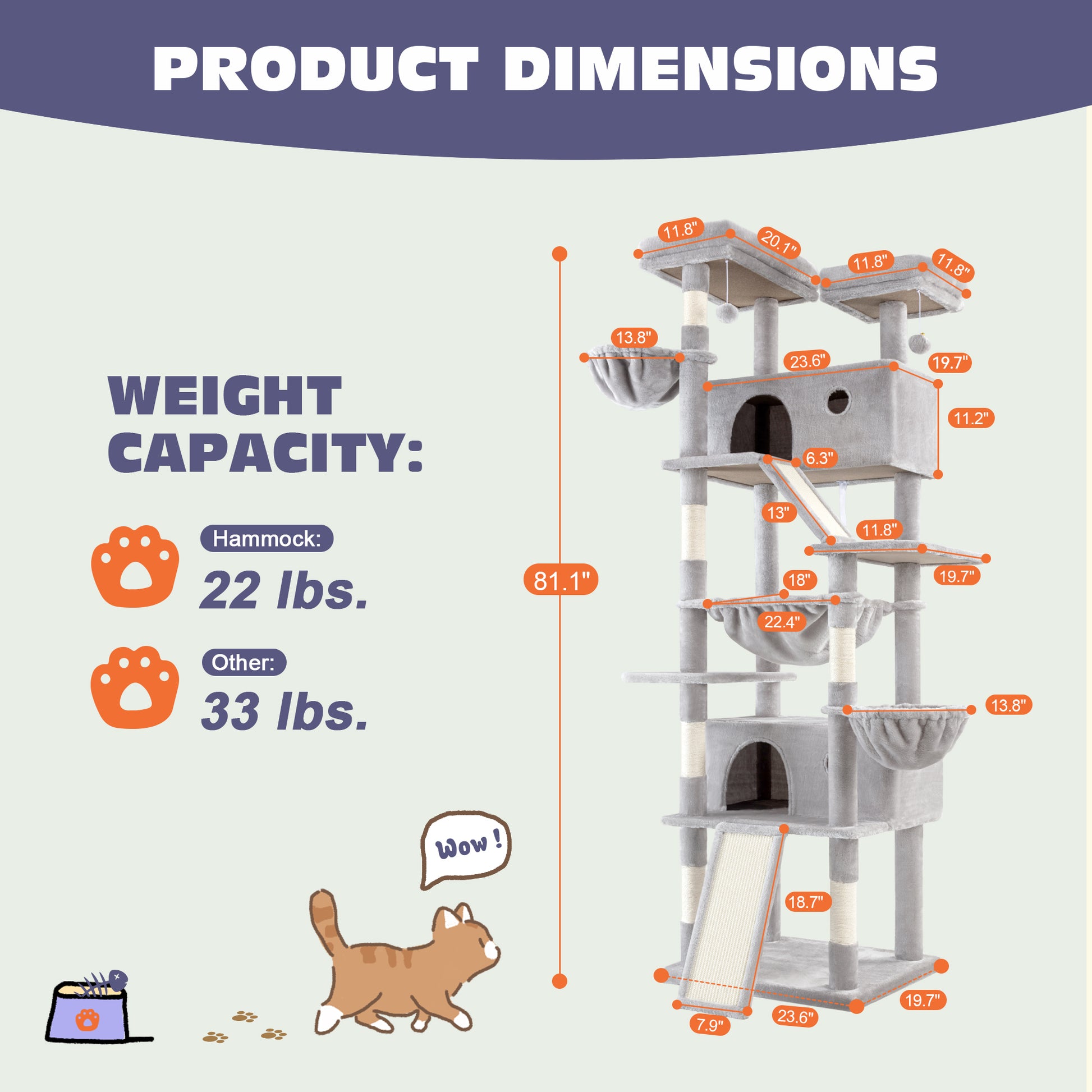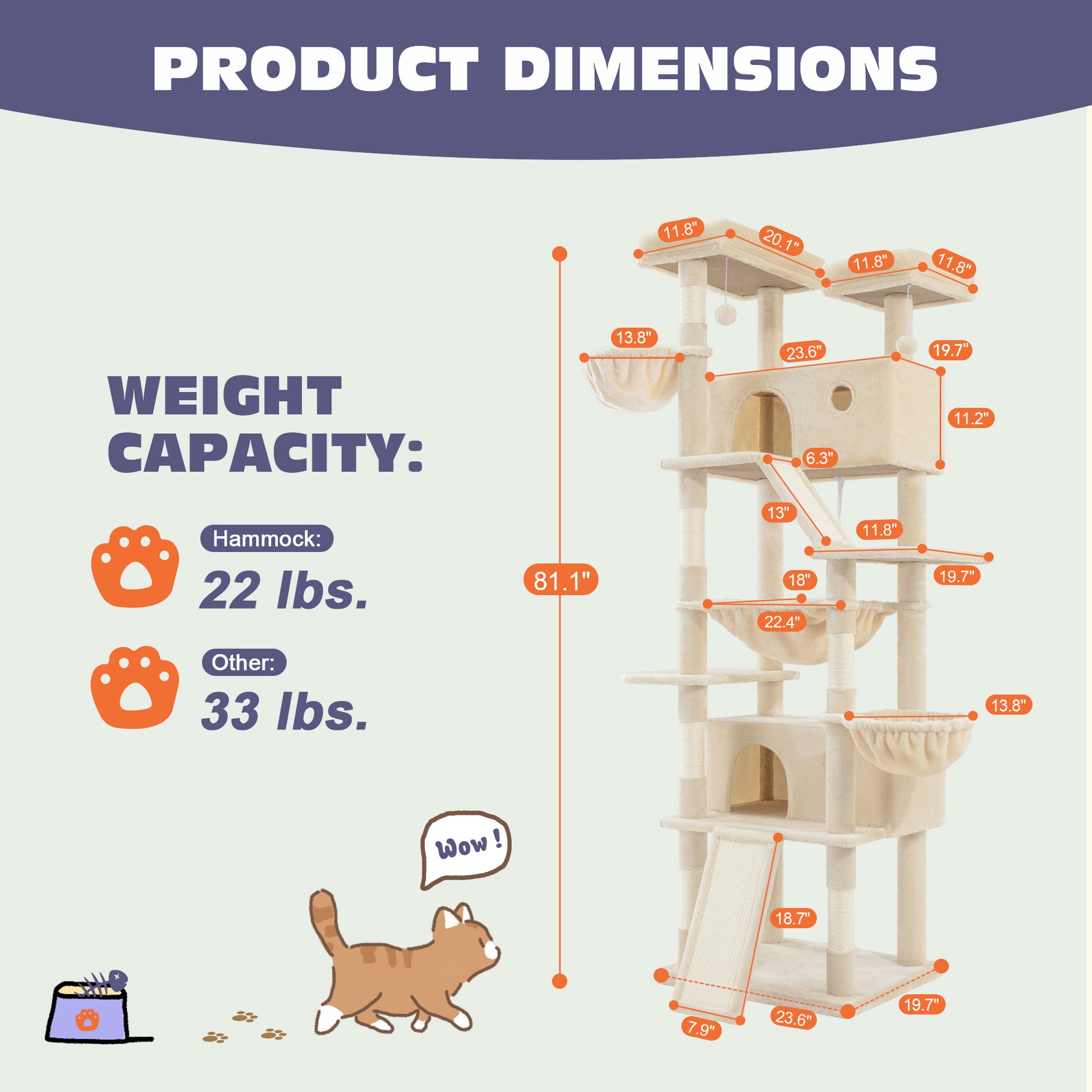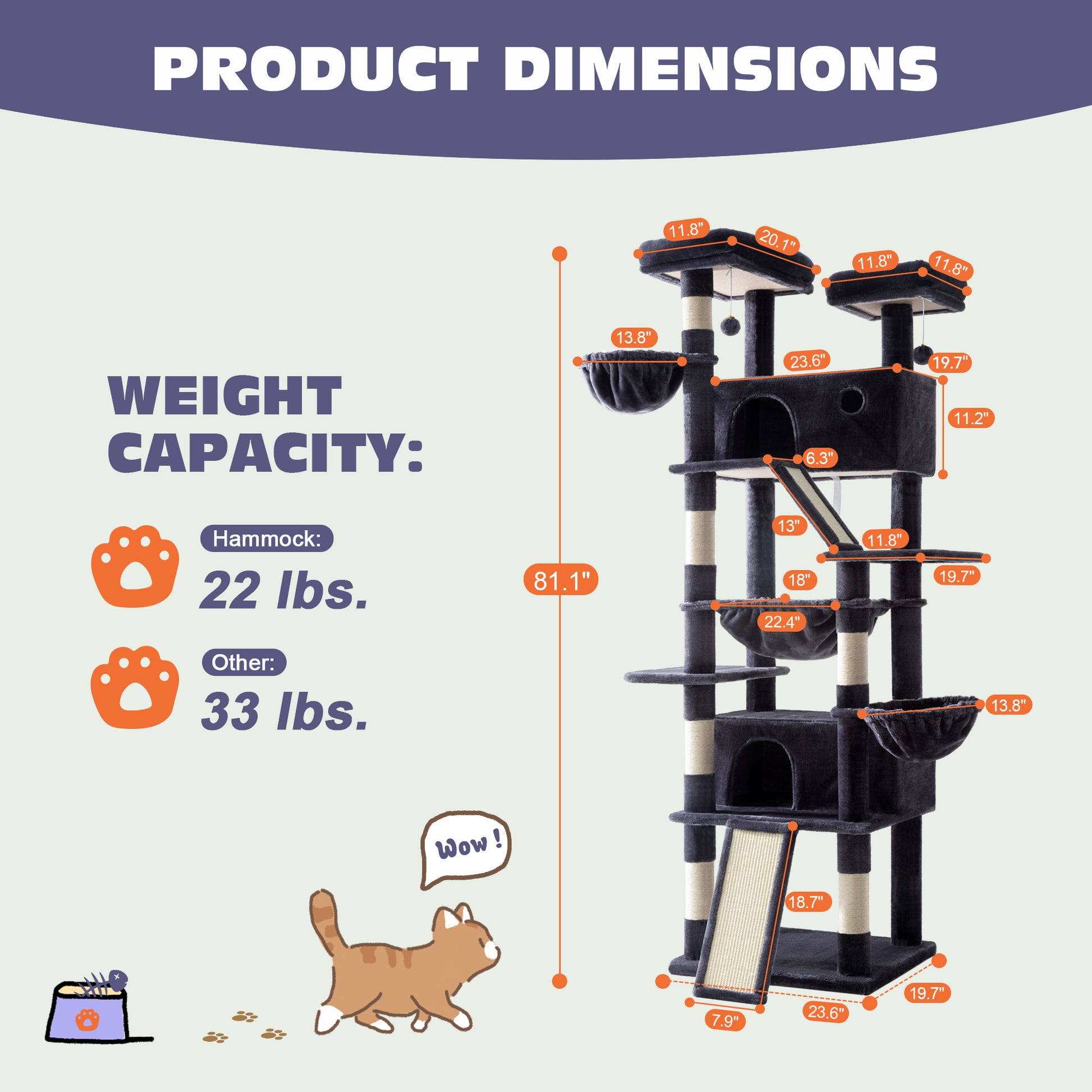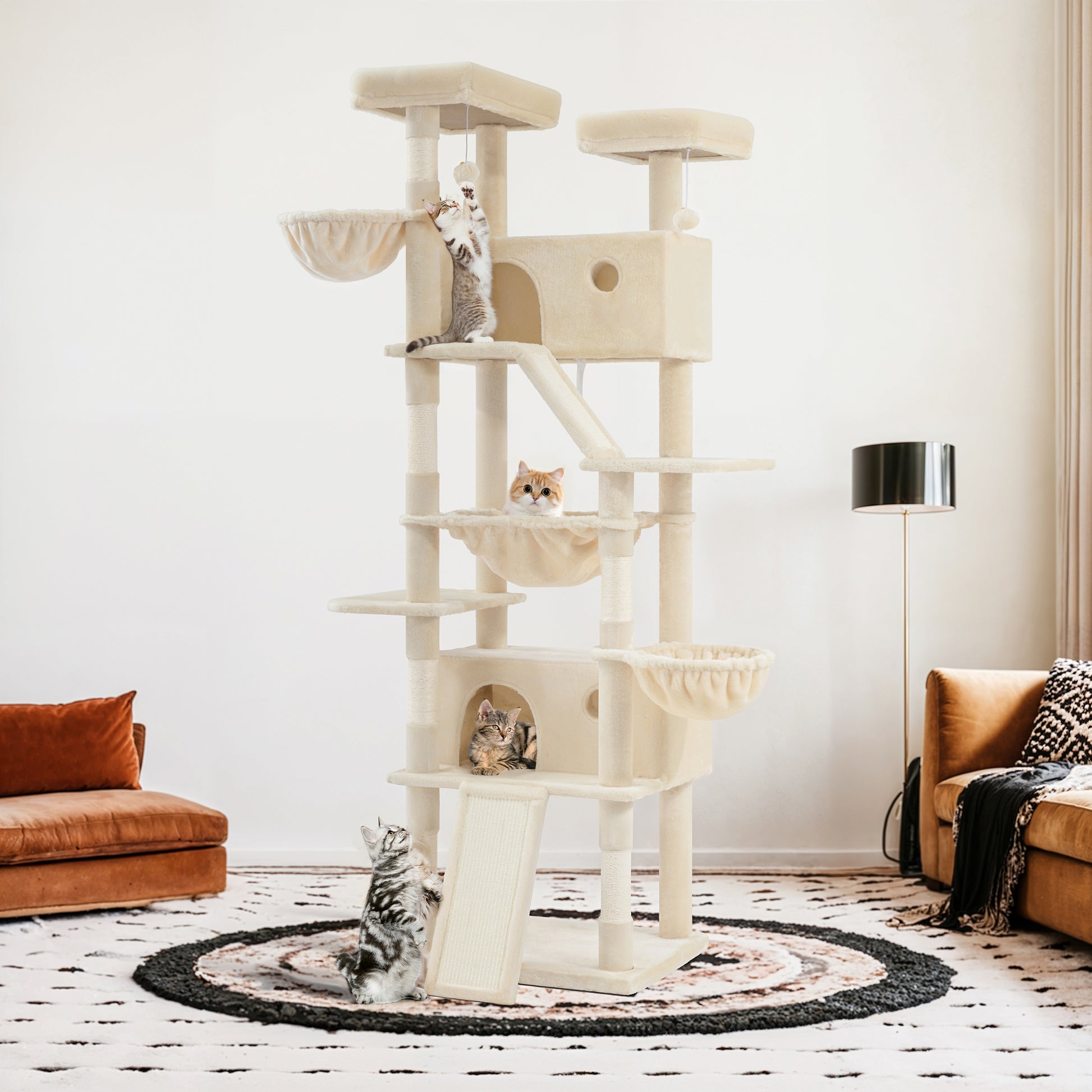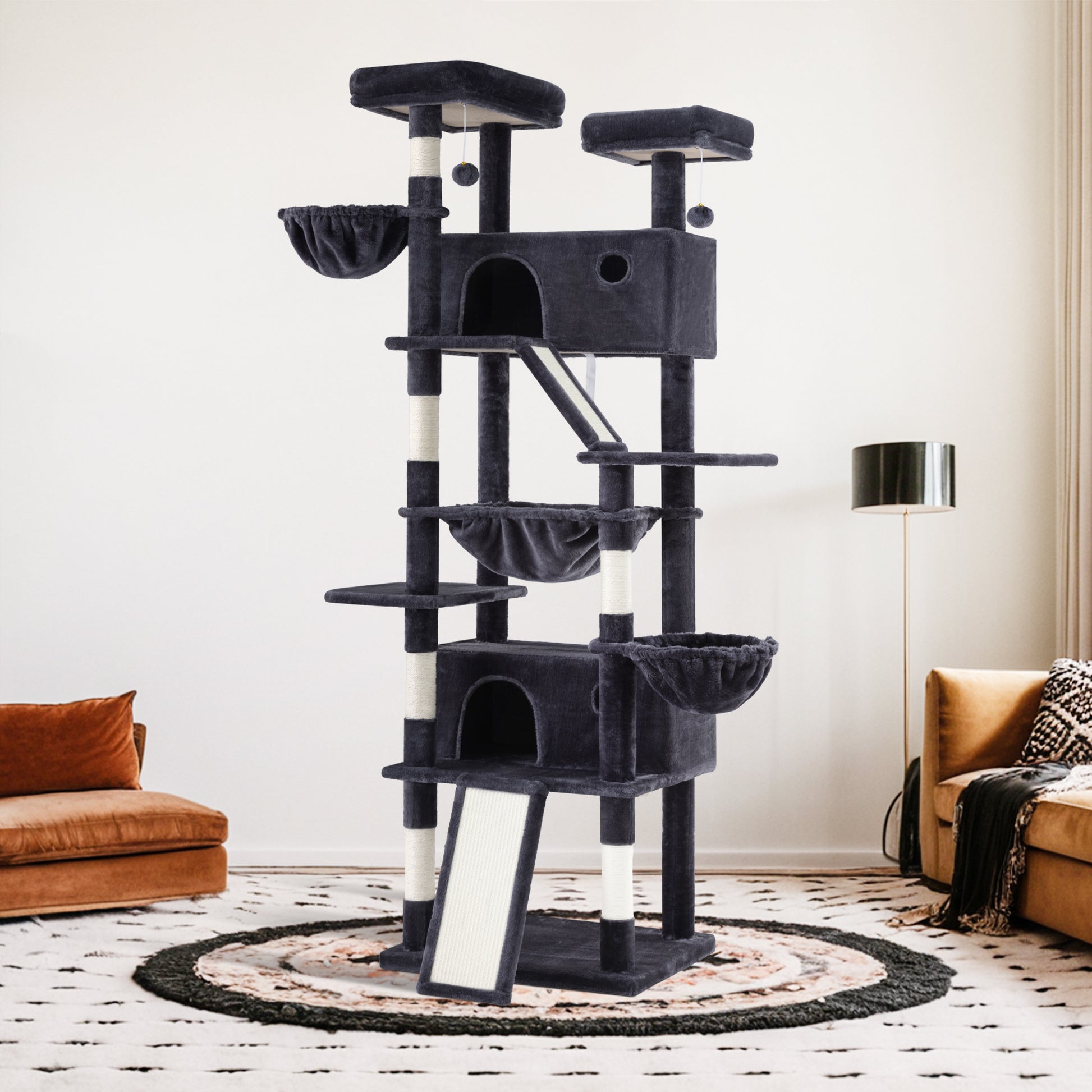 Amolife 81"H X-Large Cat Tree and Tower with Cat Condo House & 2 Scratching Ramps, Hammock & Scratching Posts