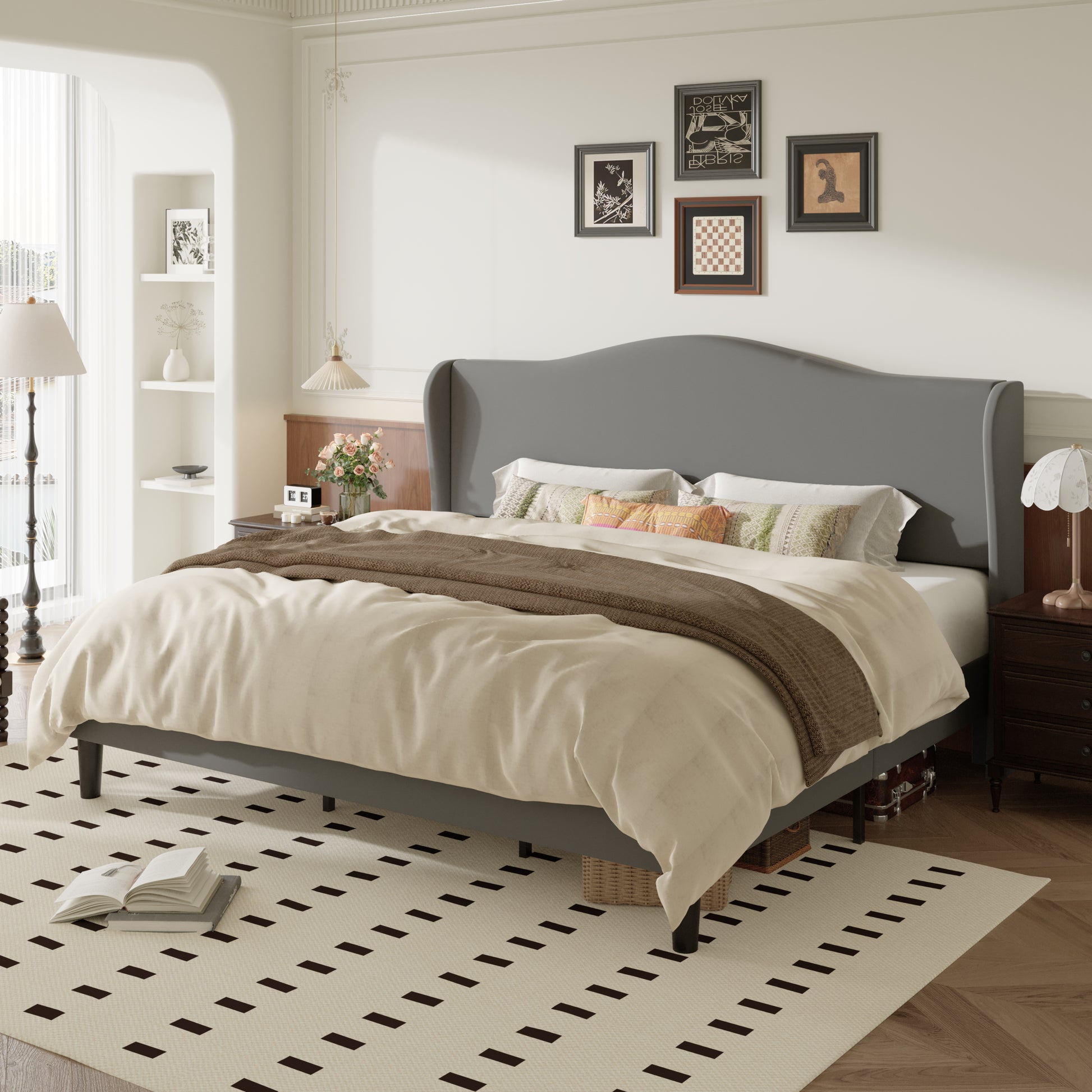 Amolife Bed Frame with Velvet Upholstered Wingback Headboard, Personalized Platform Bed, No Box Spring Required