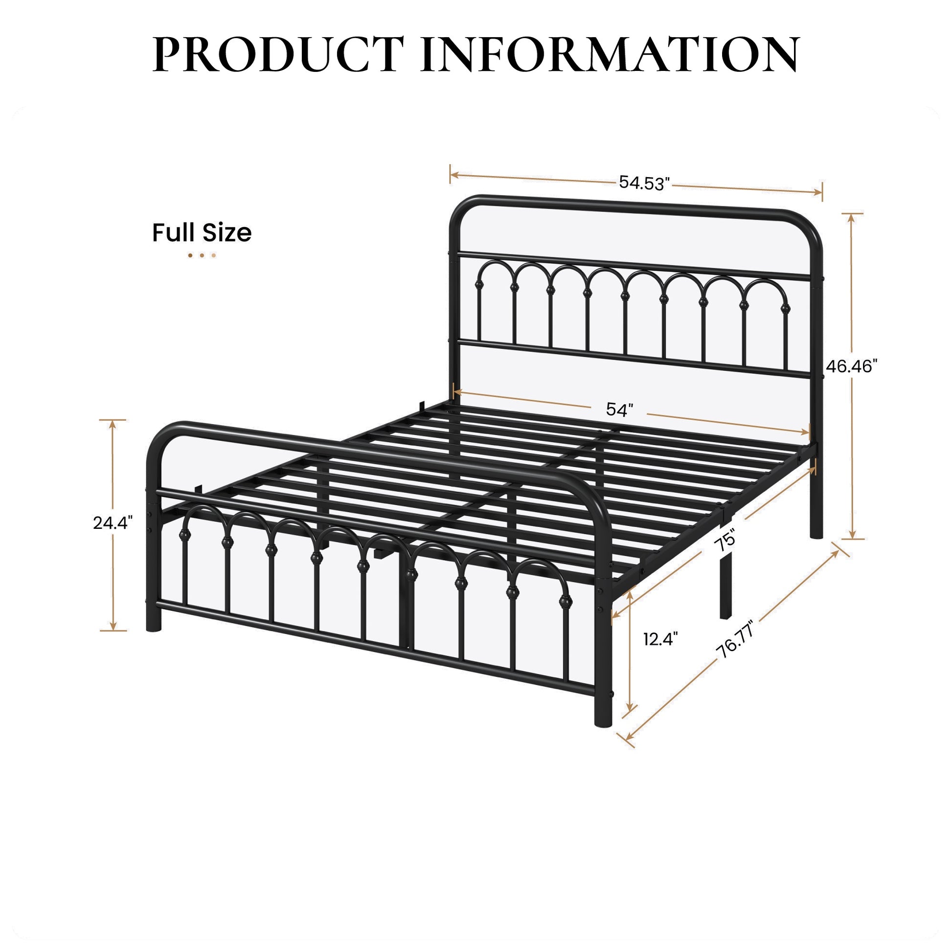 Amolife Elegant Metal Platform Bed with a Retro and Curved Iron-Art Headboard