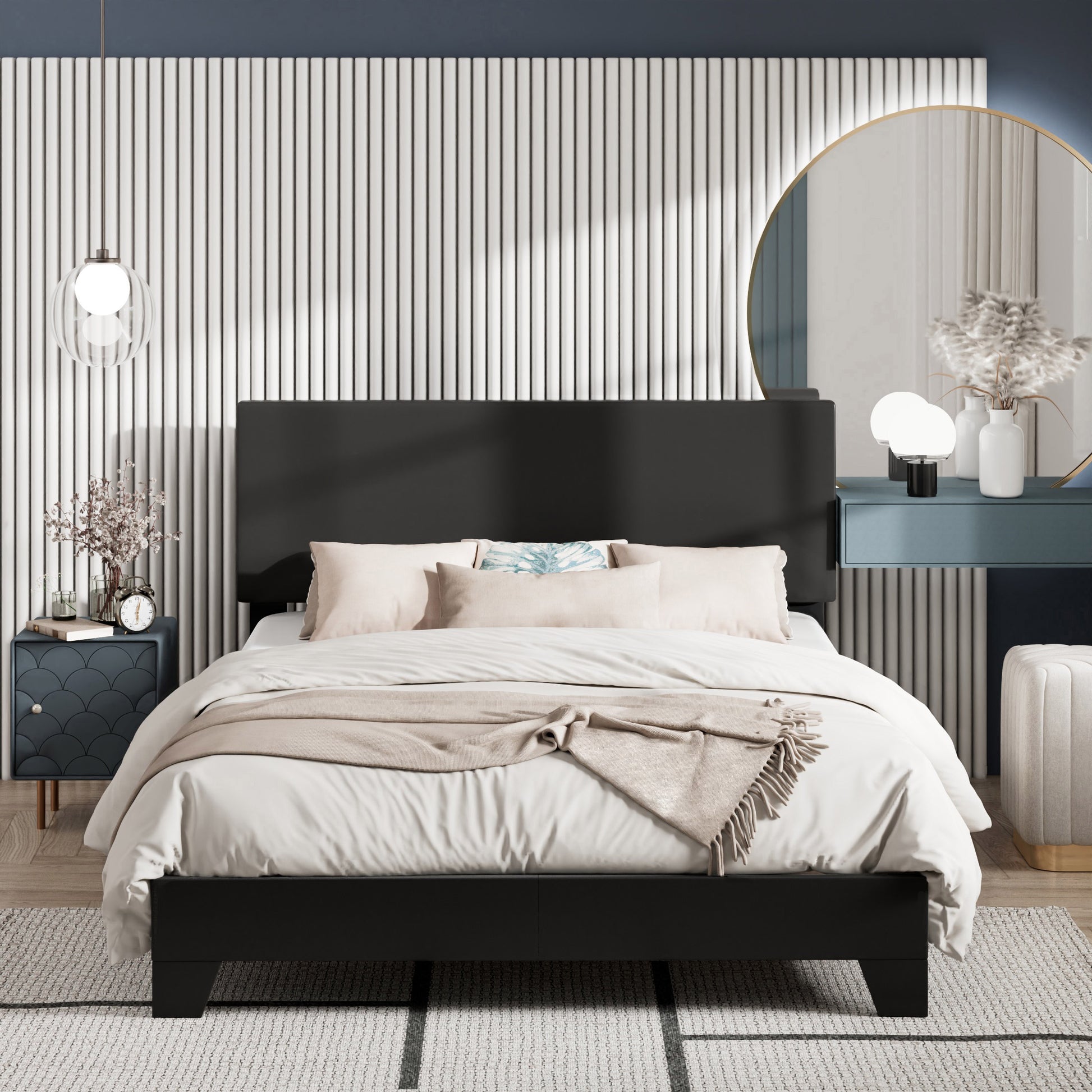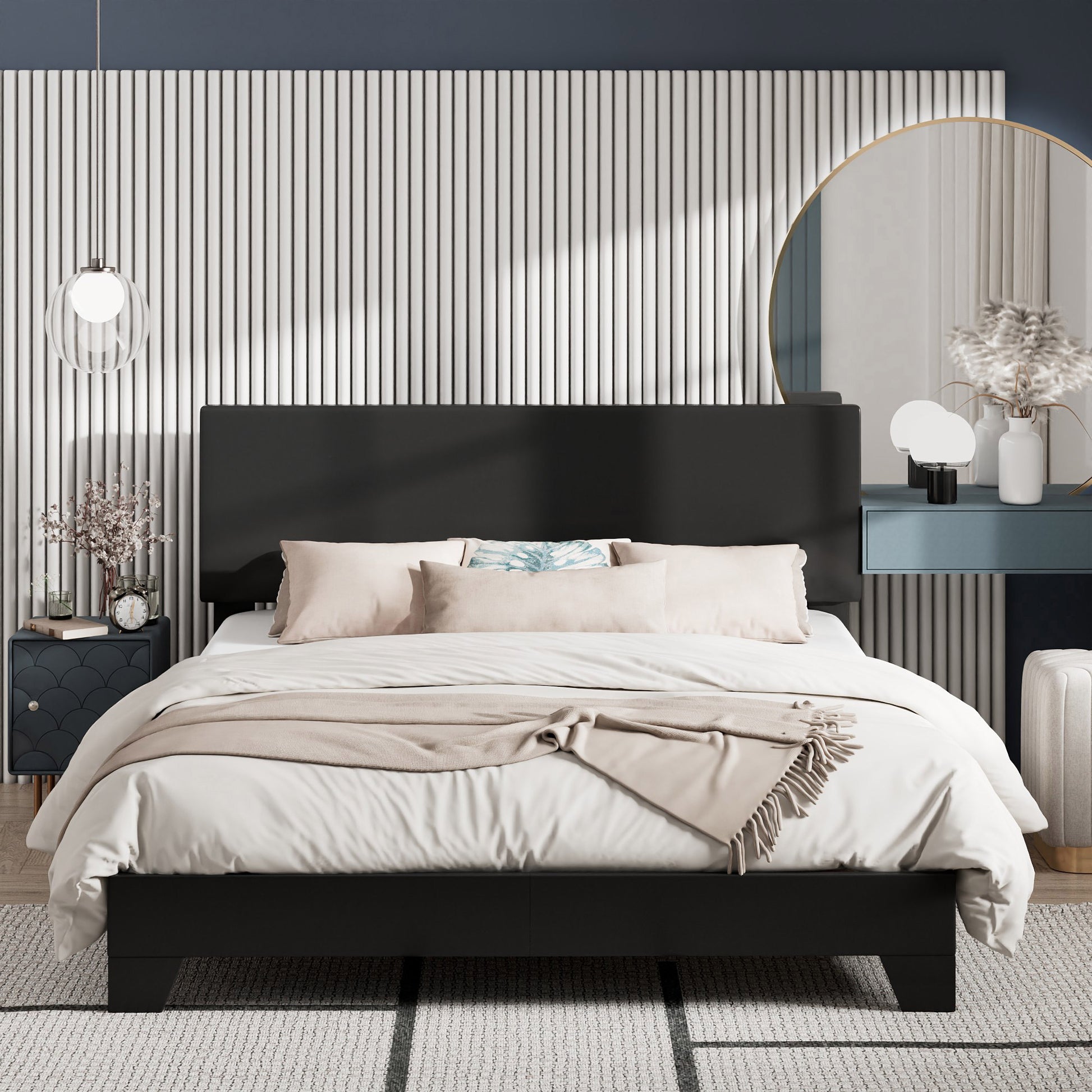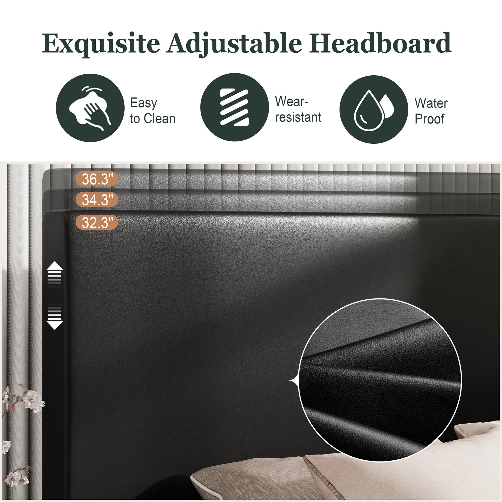 Amolife Faux Leather Platform Bed Frame with Adjustable Headboard
