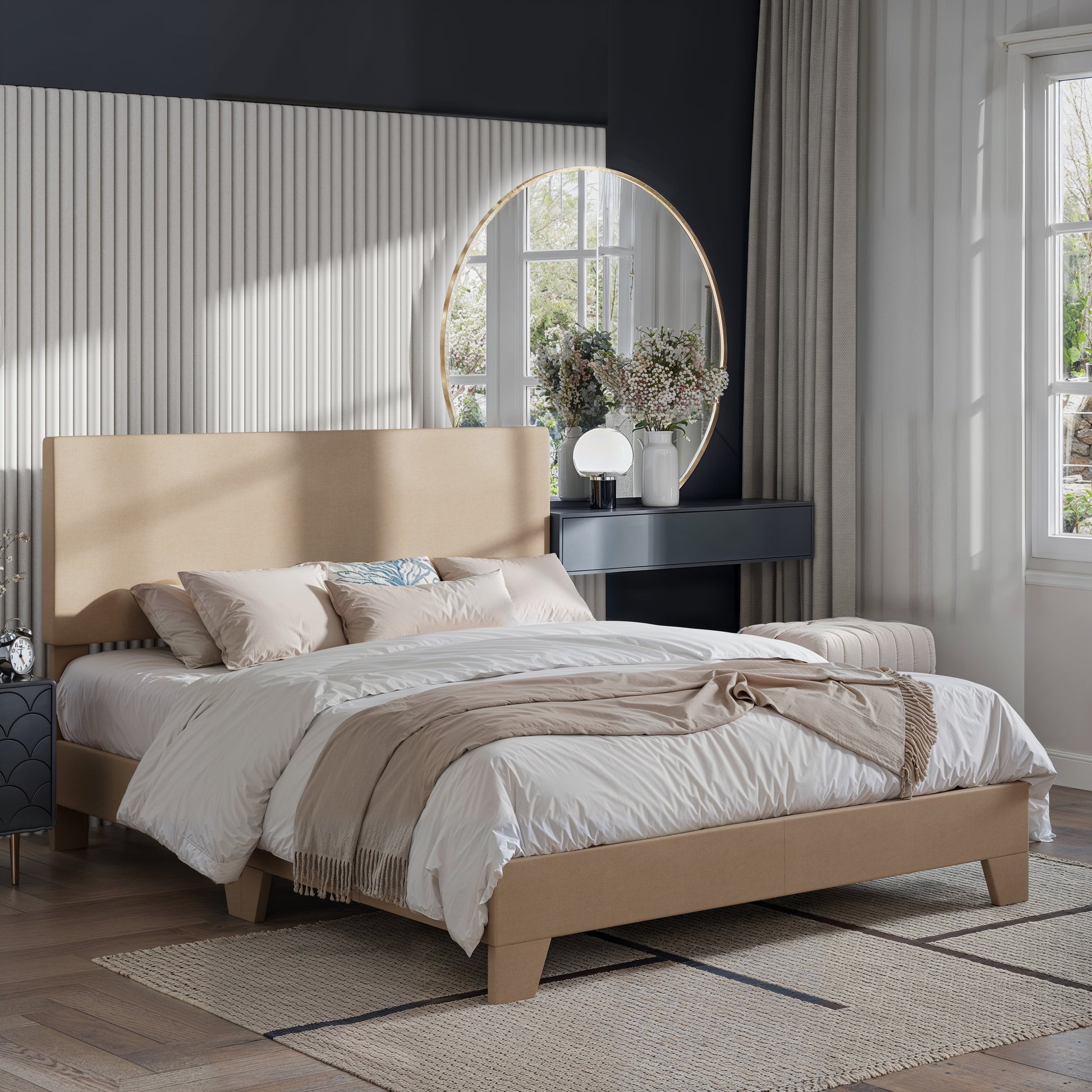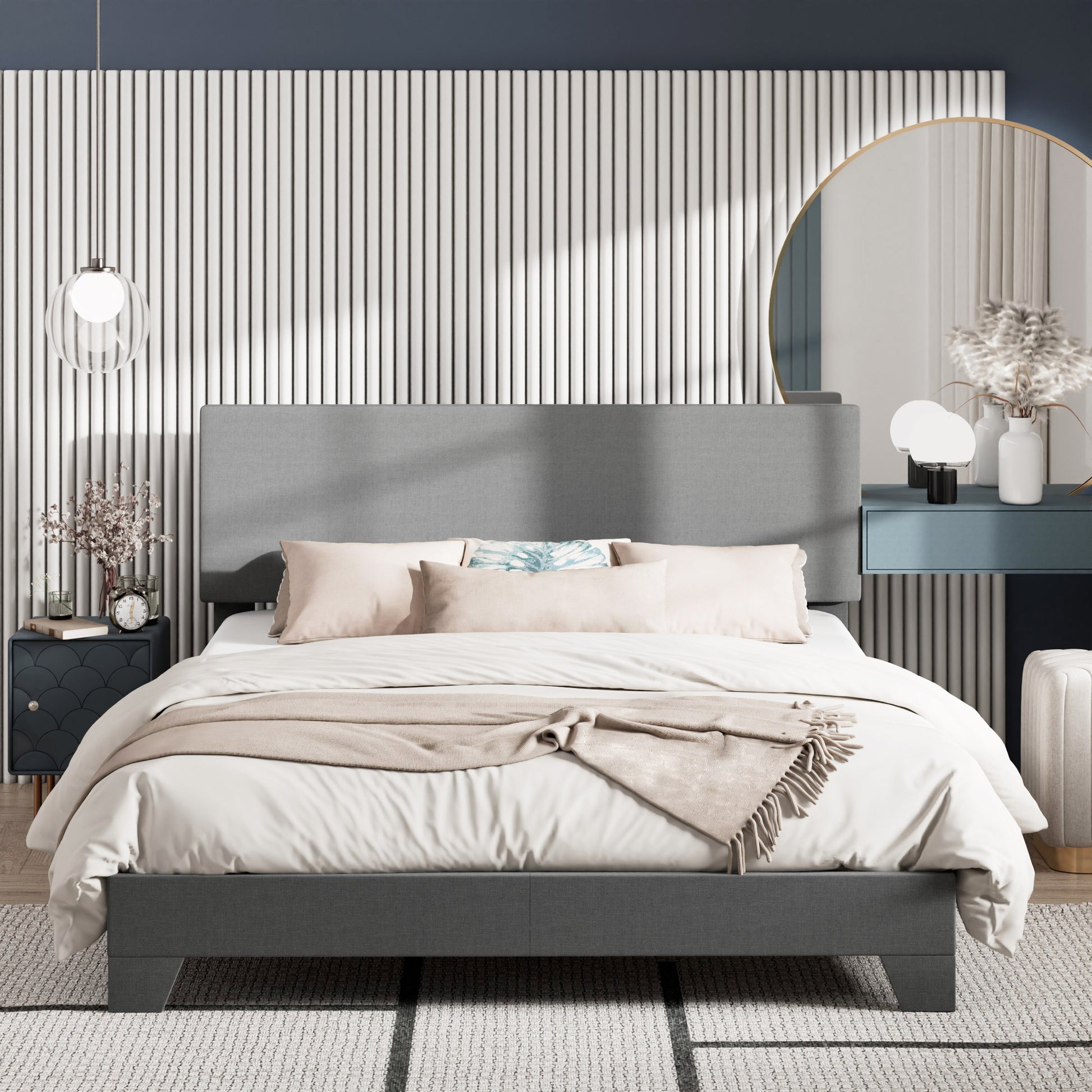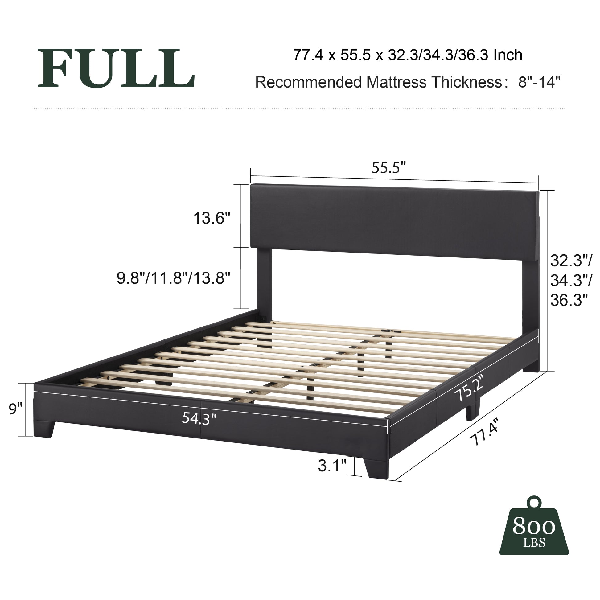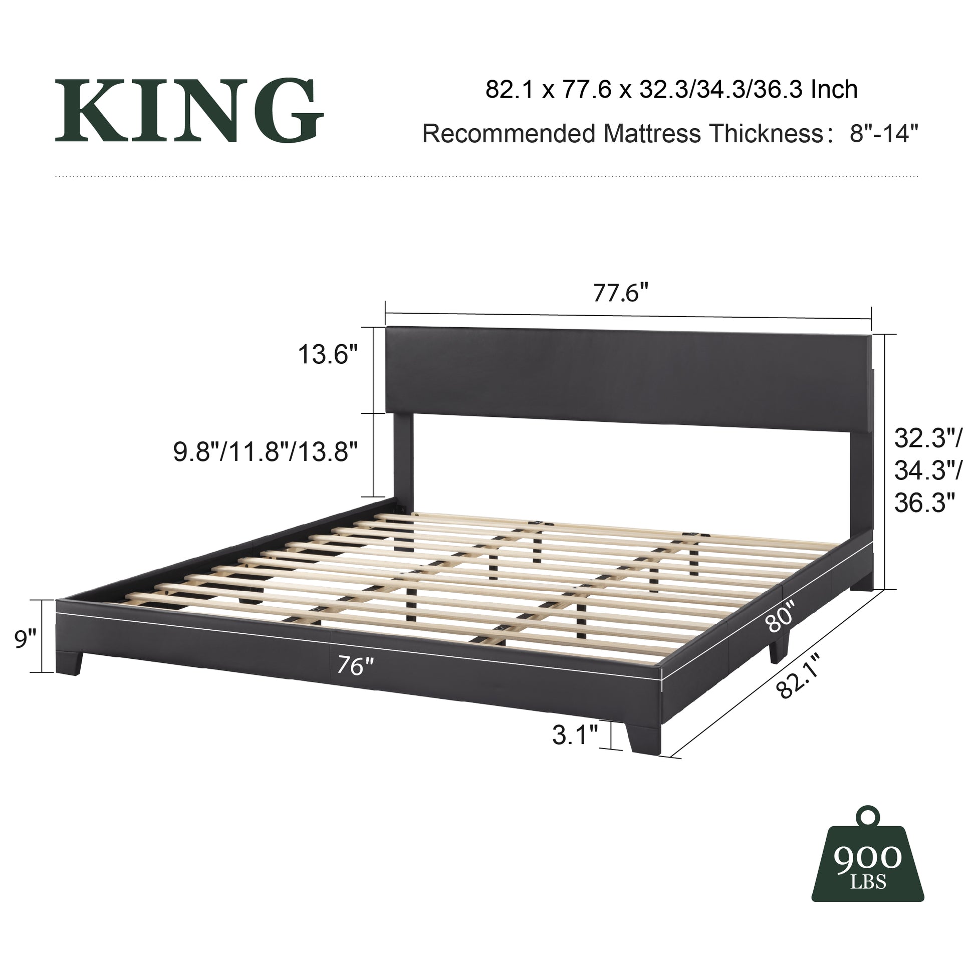Amolife Faux Leather Platform Bed Frame with Adjustable Headboard