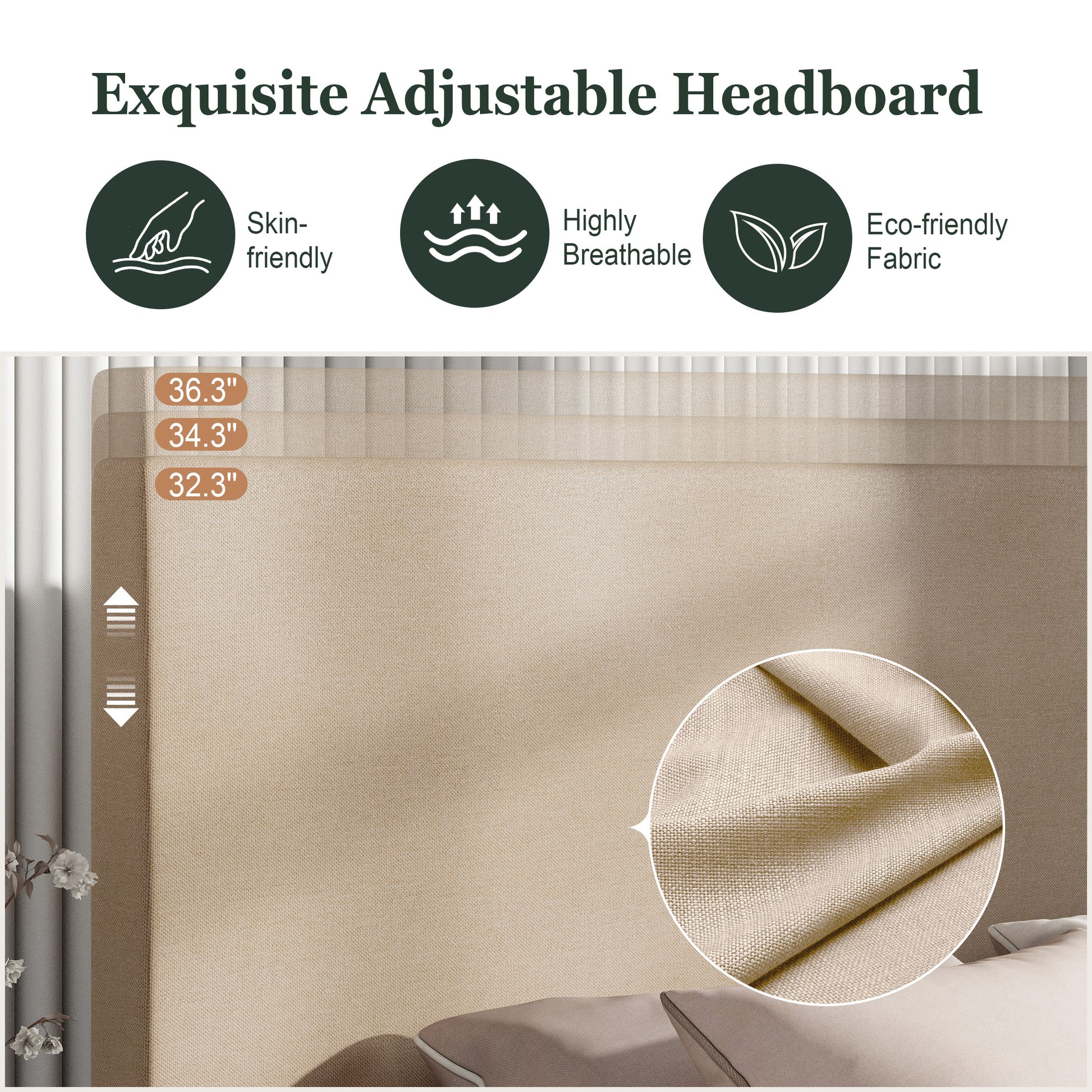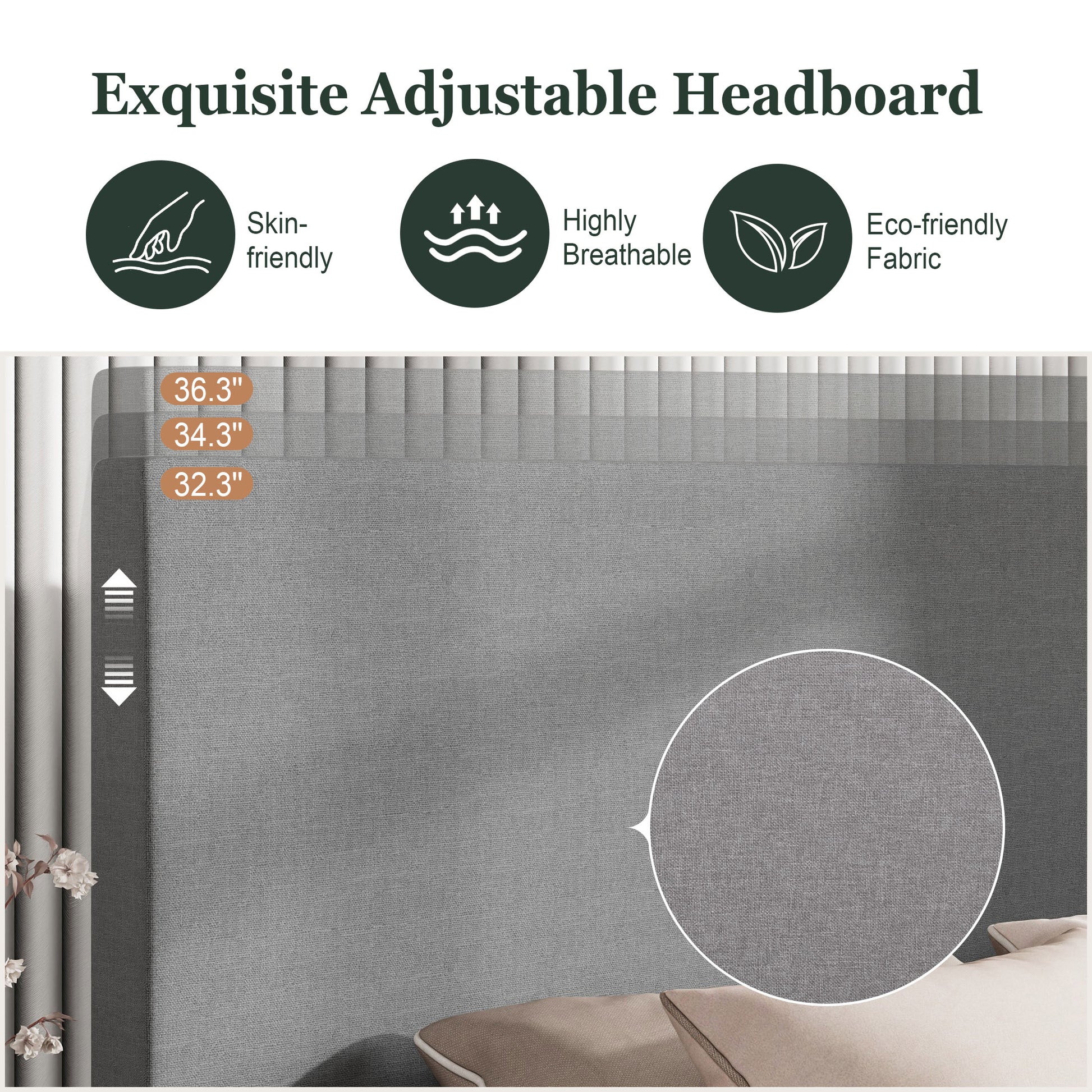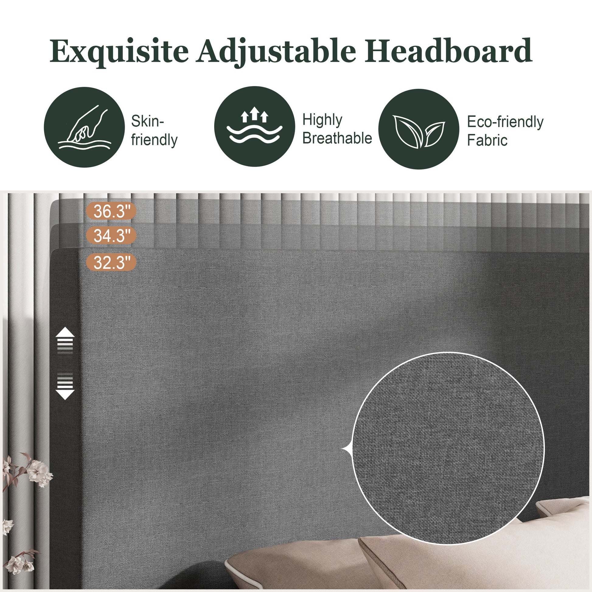 - Stylish and Comfortable Headboard: The luxurious faux leather exudes sophistication, while the linen fabric adds a touch of understated elegance to your space. And tailor your sleeping experience with the adjustable headboard feature.