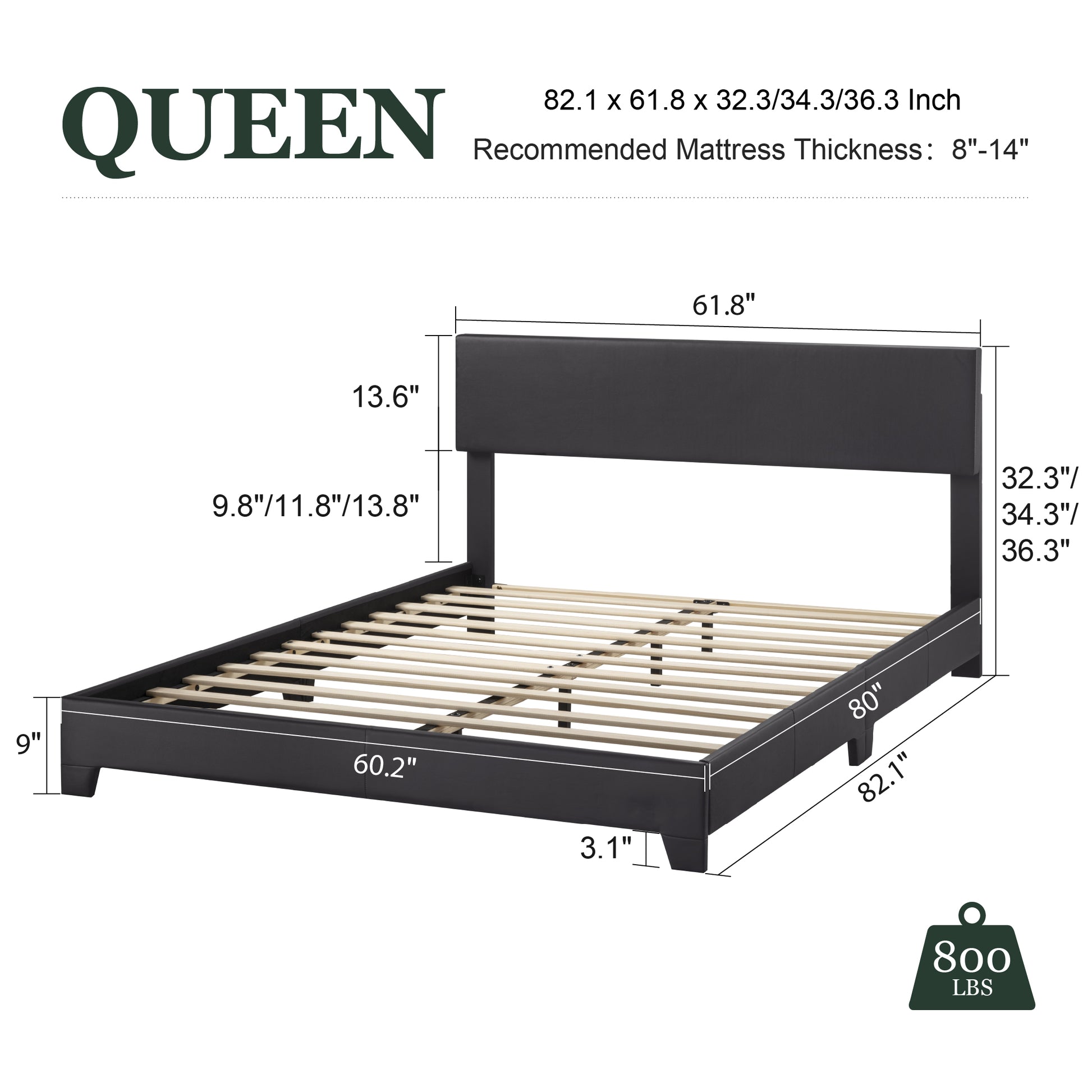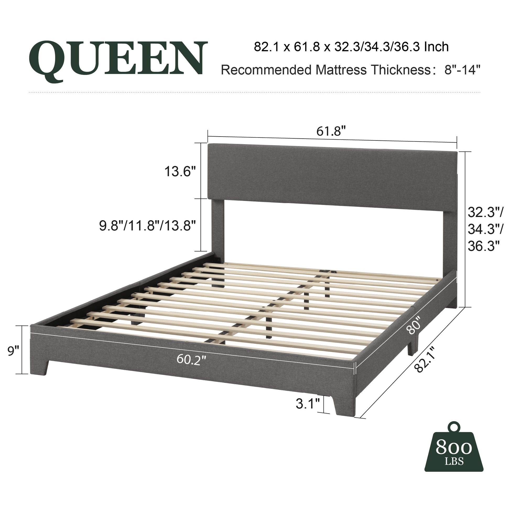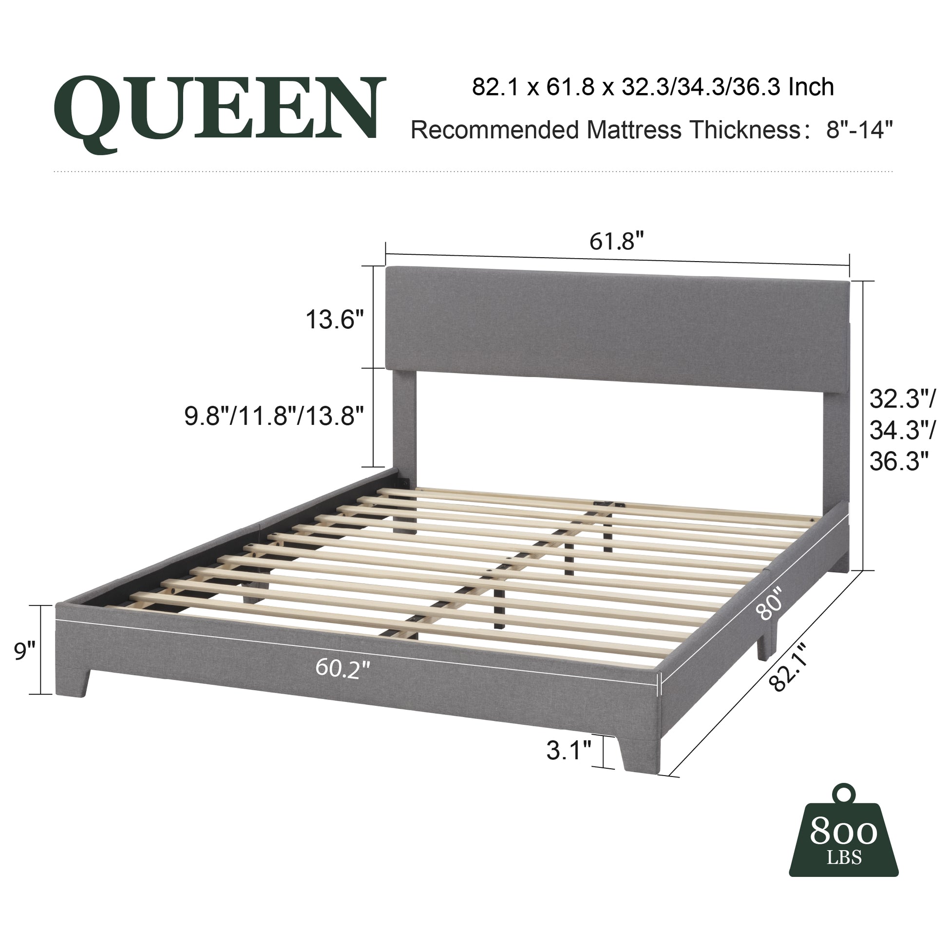 - Queen Size: 82.1'' L x 61.8'' W x 32.3''- 36.3'' H