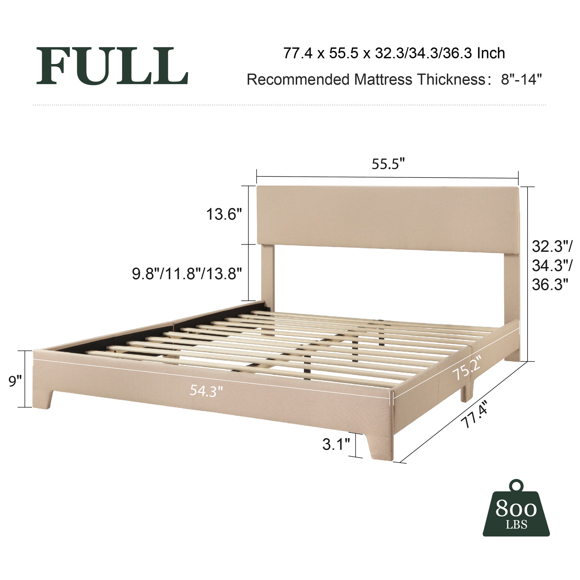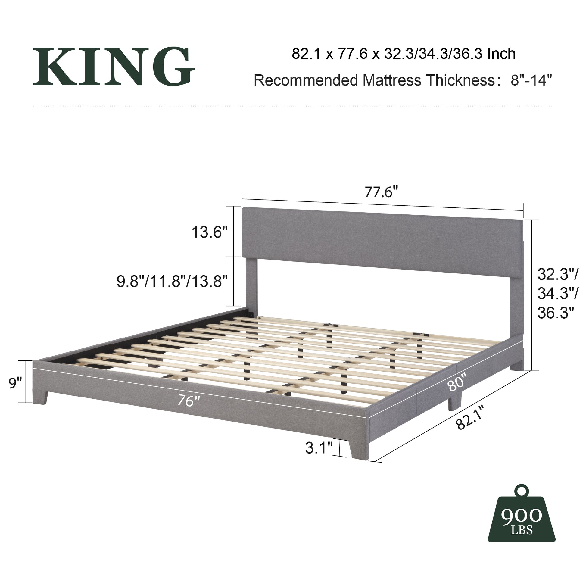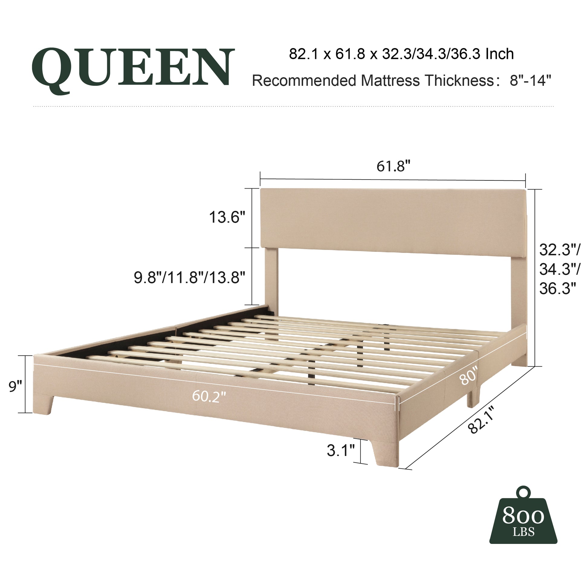 - Queen Size: 82.1'' L x 61.8'' W x 32.3''- 36.3'' H