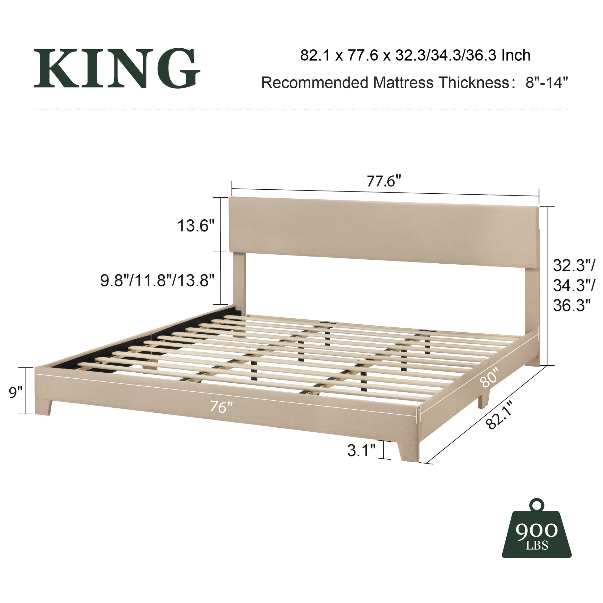 - King Size: 82.1'' L x 77.6'' W x 32.3''- 36.3'' H