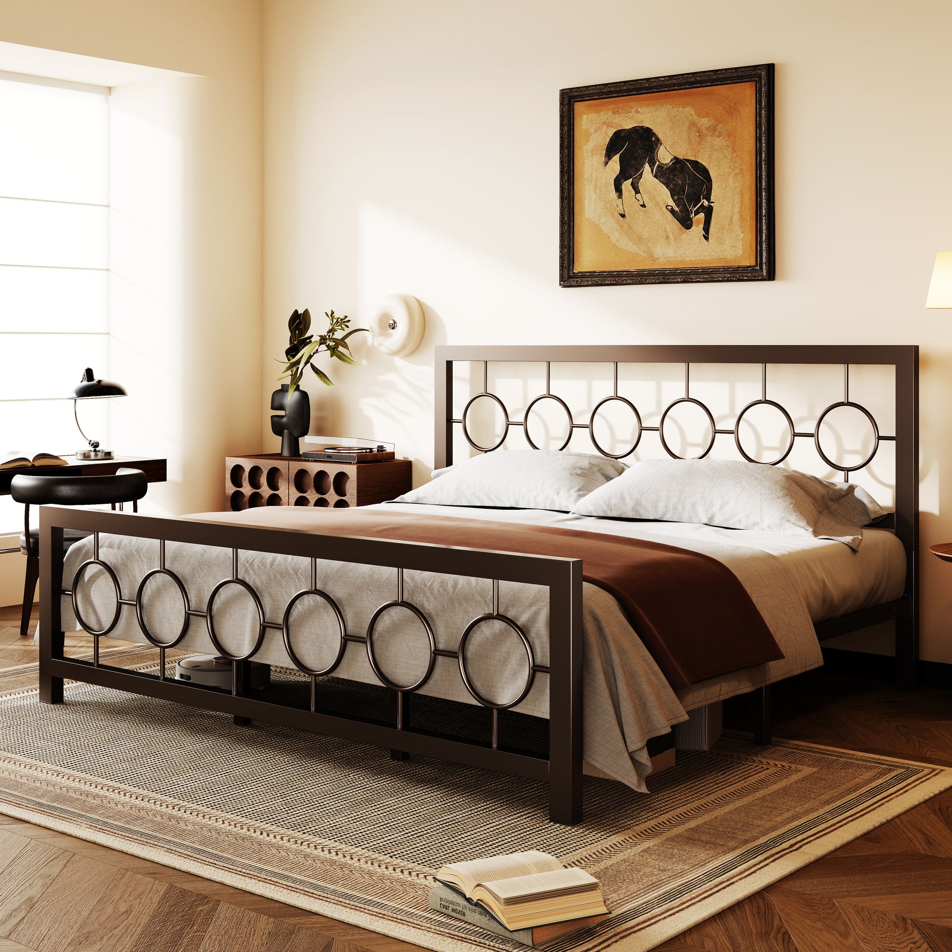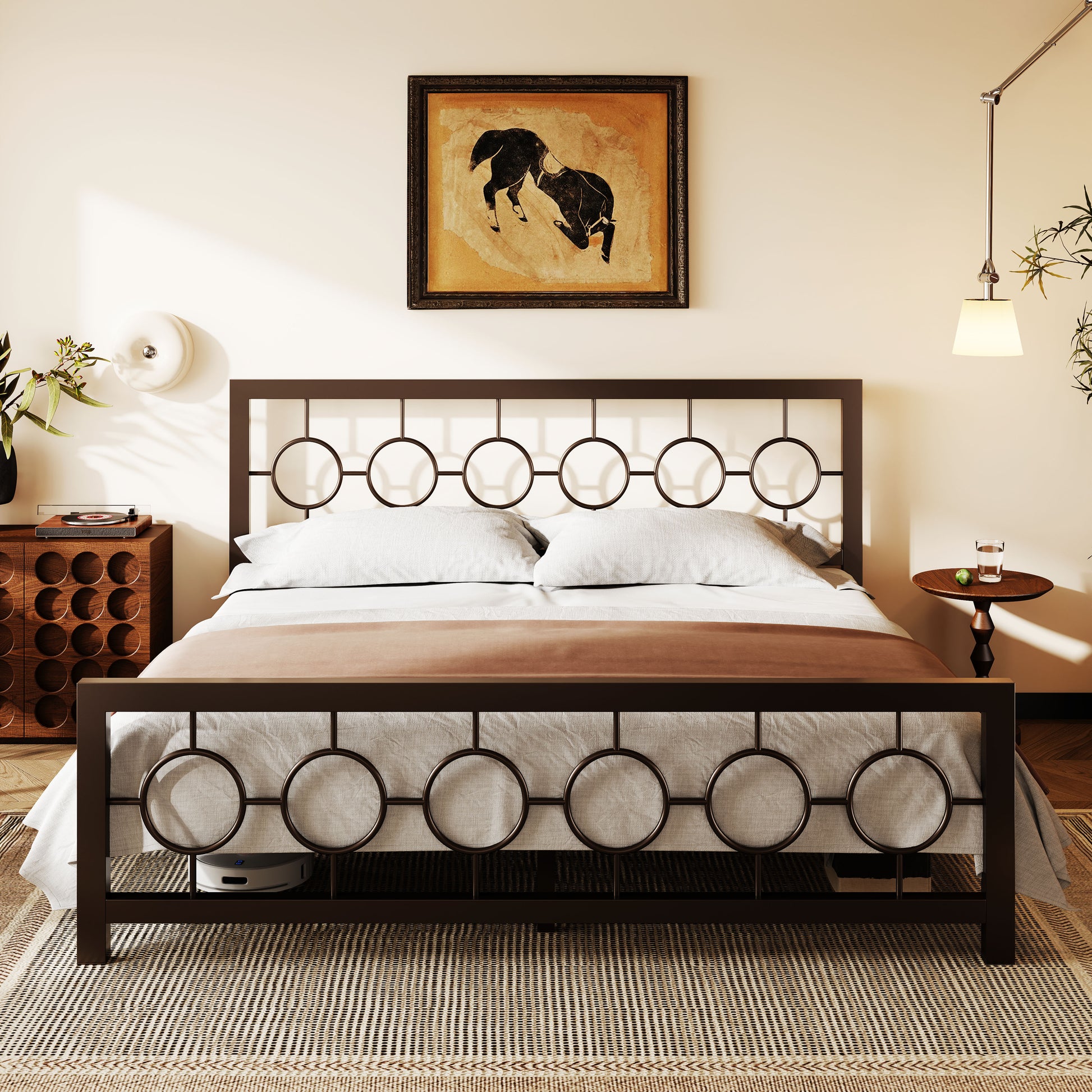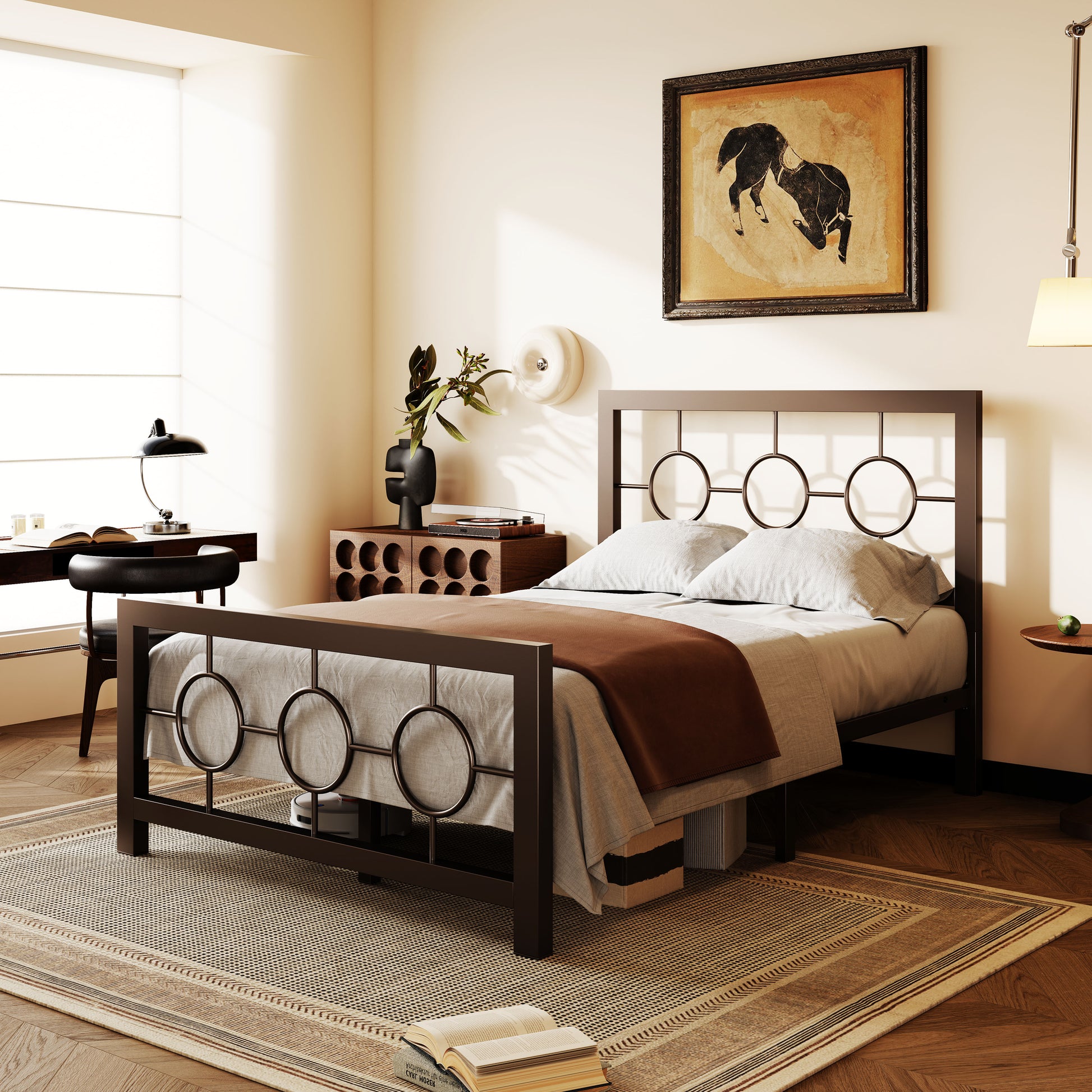 Amolife Metal Platform Bed Frame with Circular Vintage Headboard & Footboard