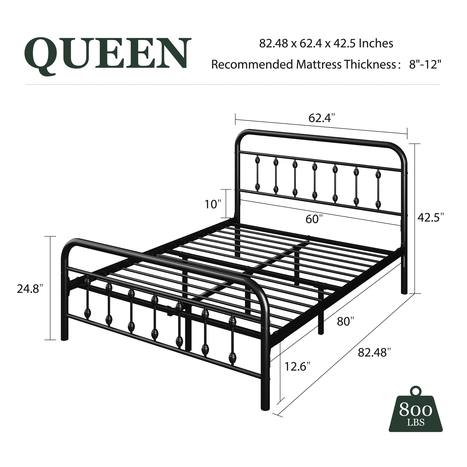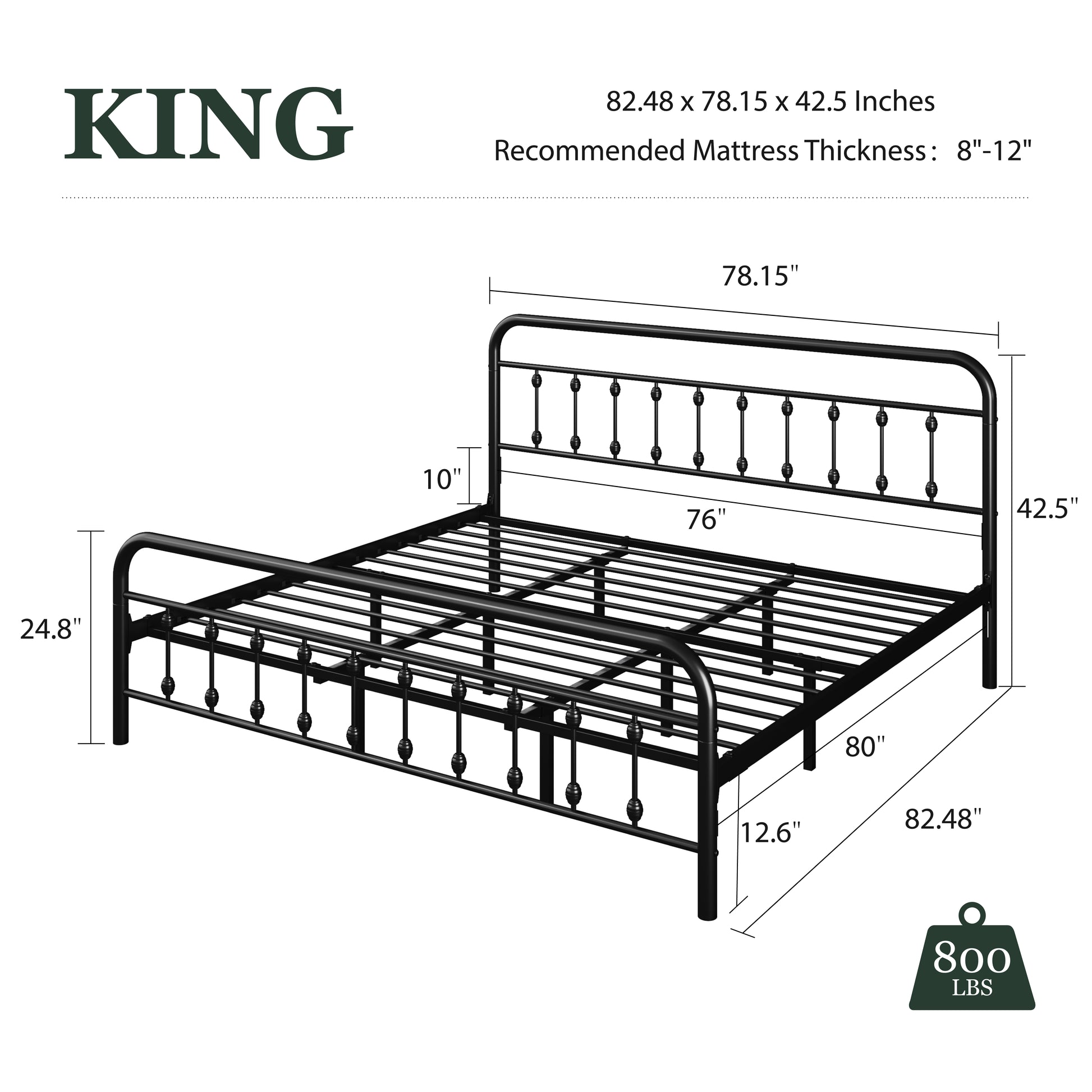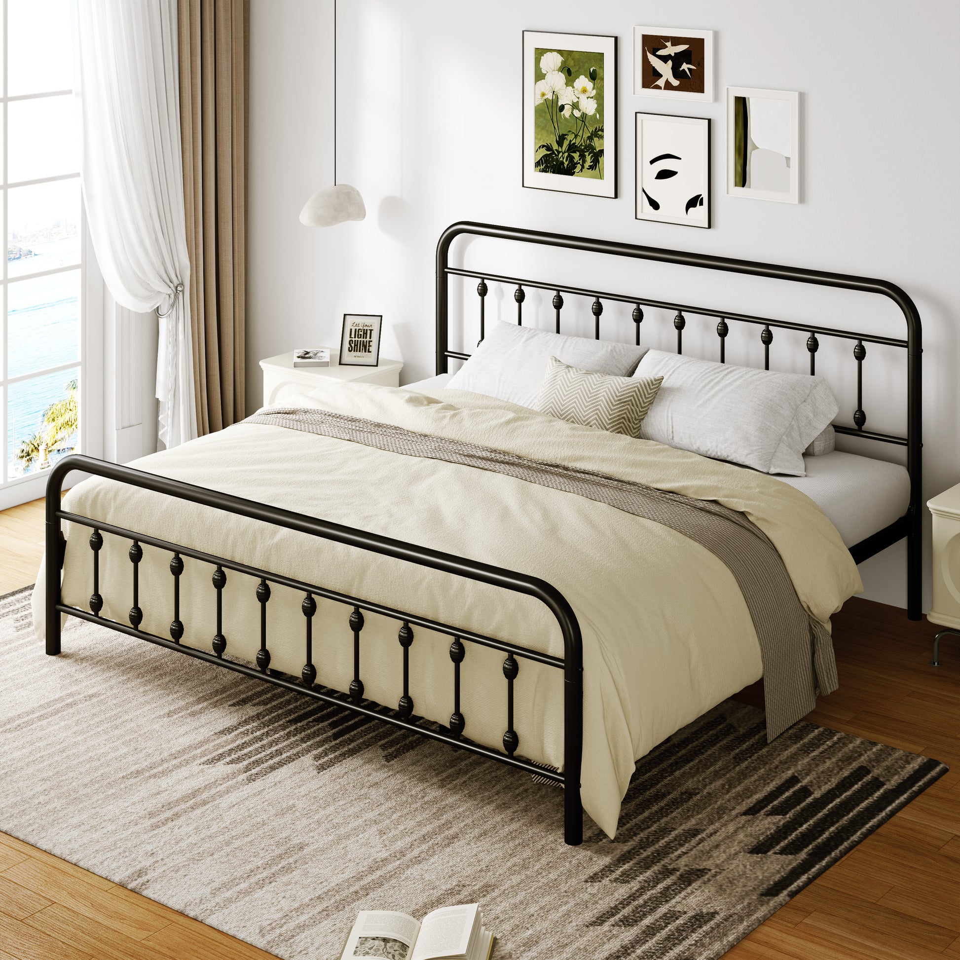 Amolife Metal Platform Bed Frame with Vintage Metal Headboard and 12.6" Under-Bed Storage
