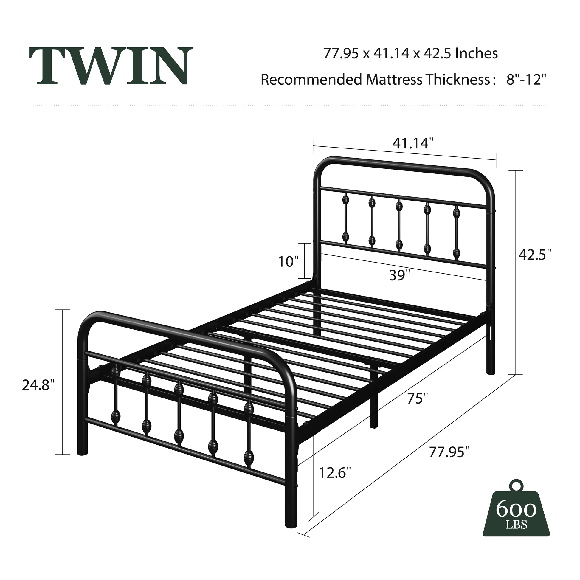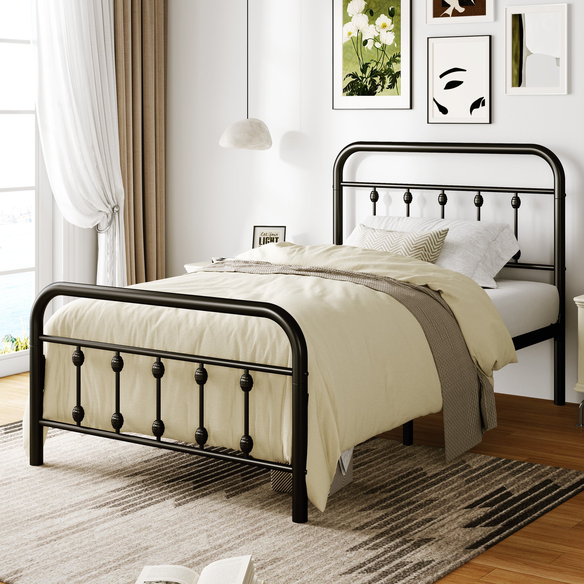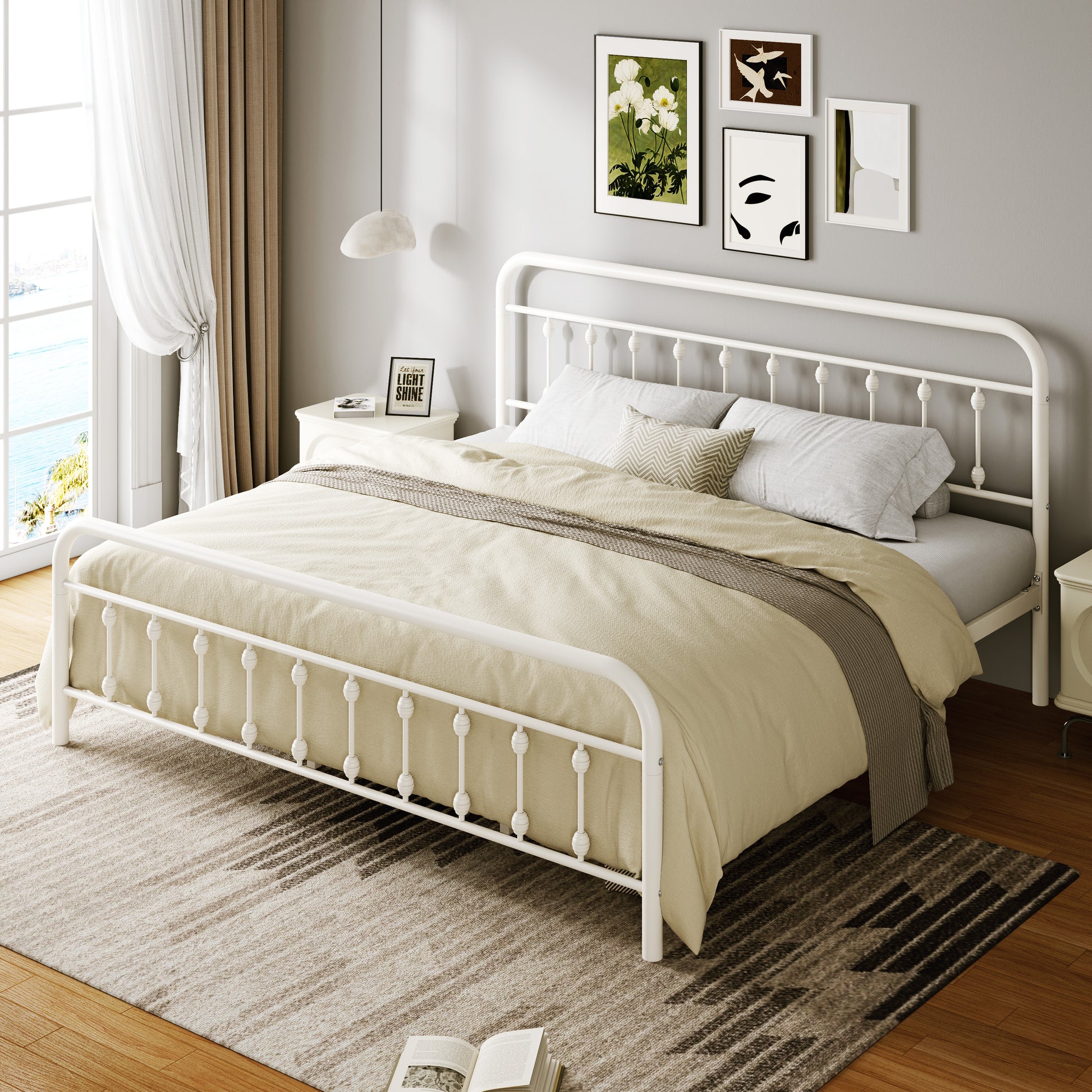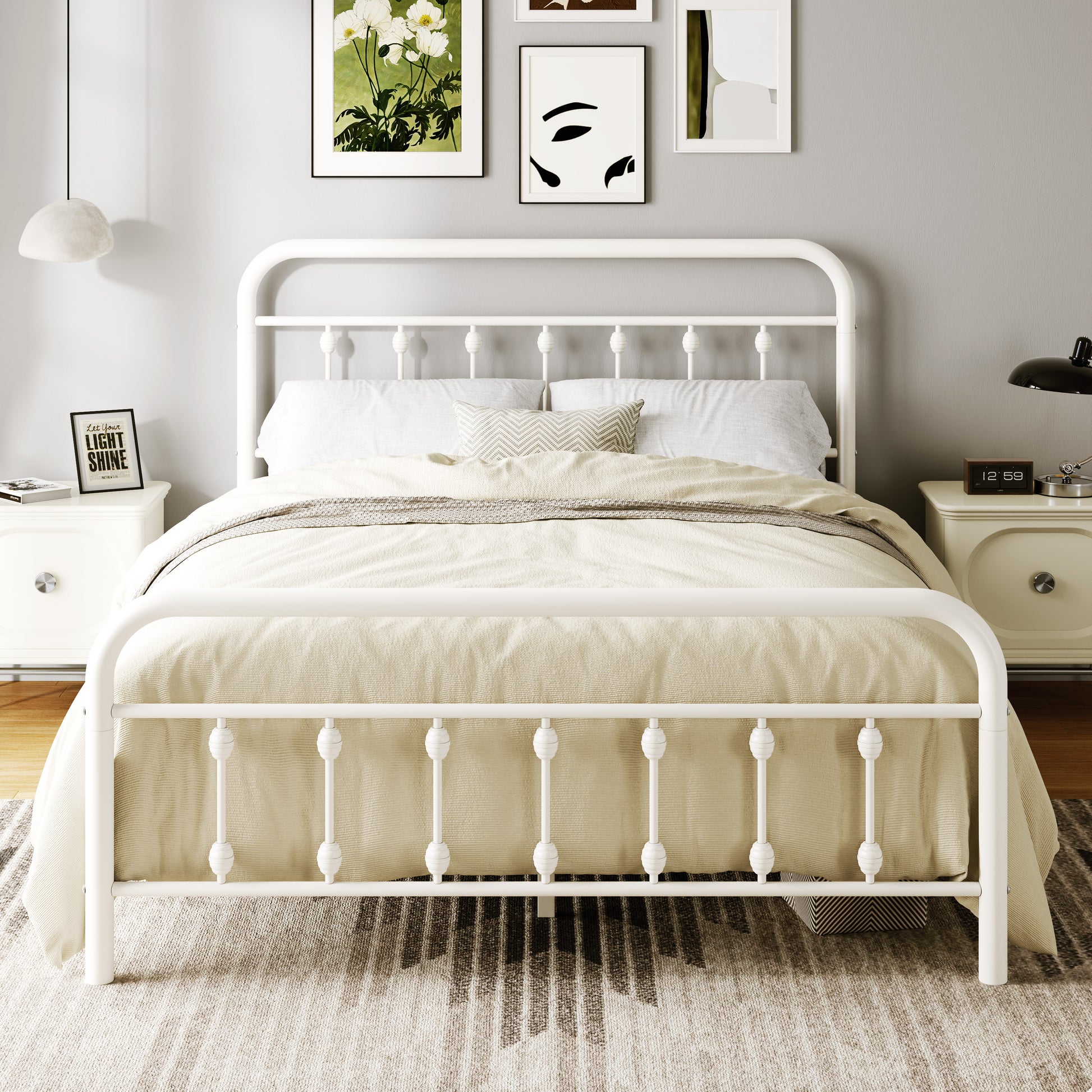 Amolife Metal Platform Bed Frame with Vintage Metal Headboard and 12.6" Under-Bed Storage