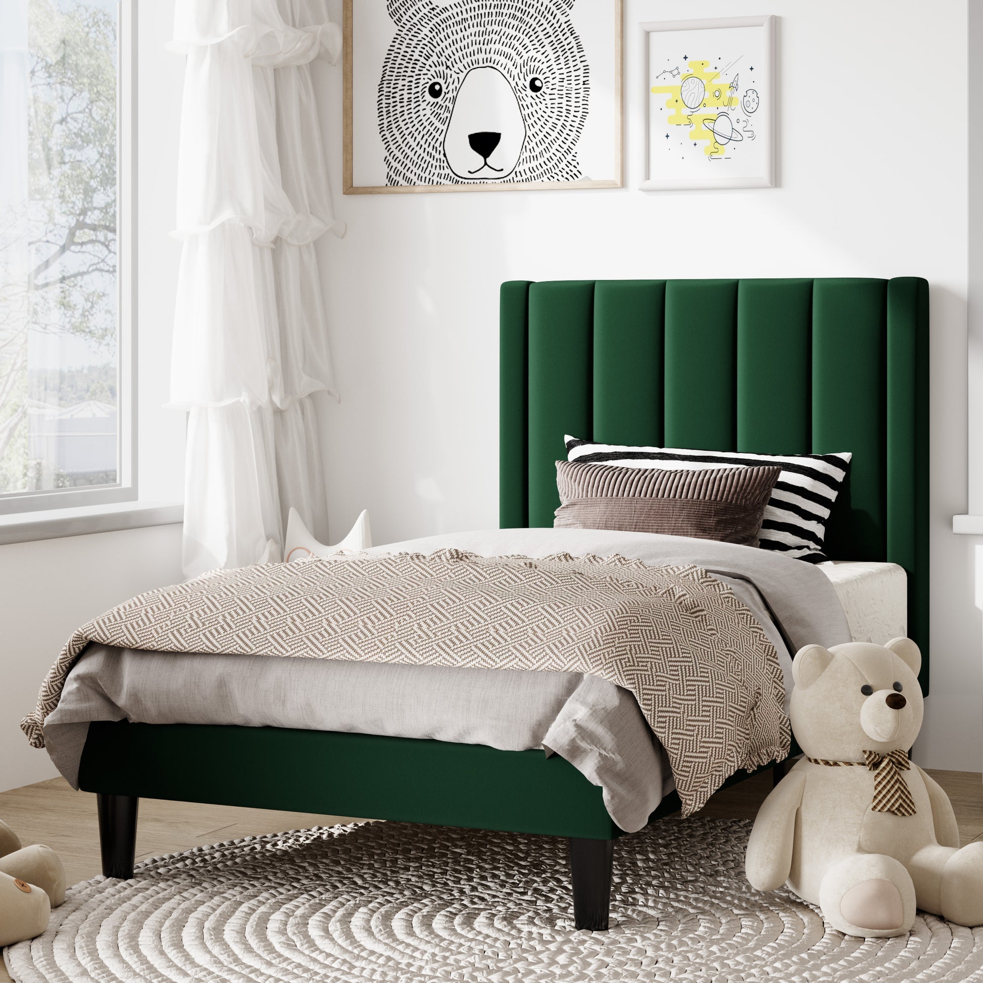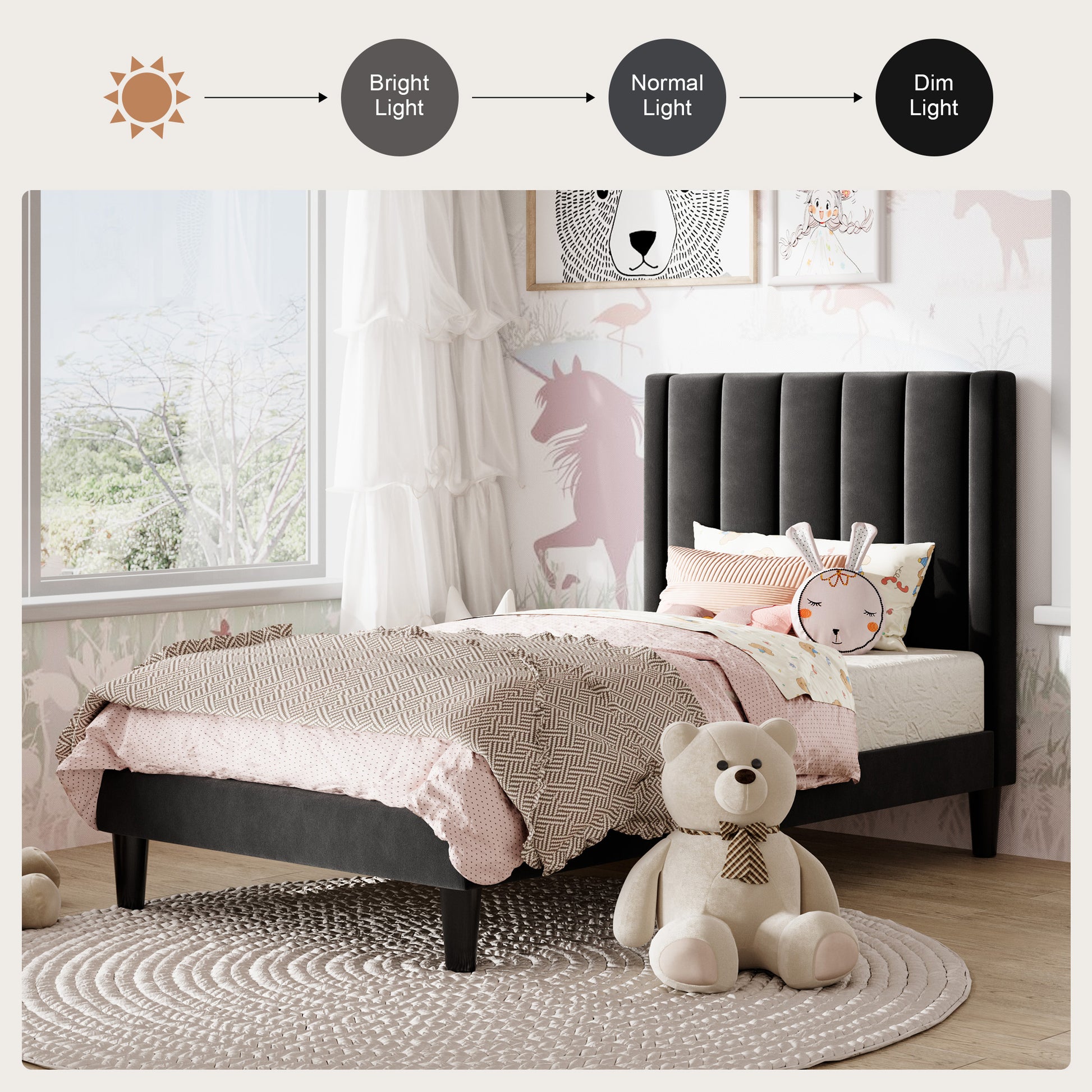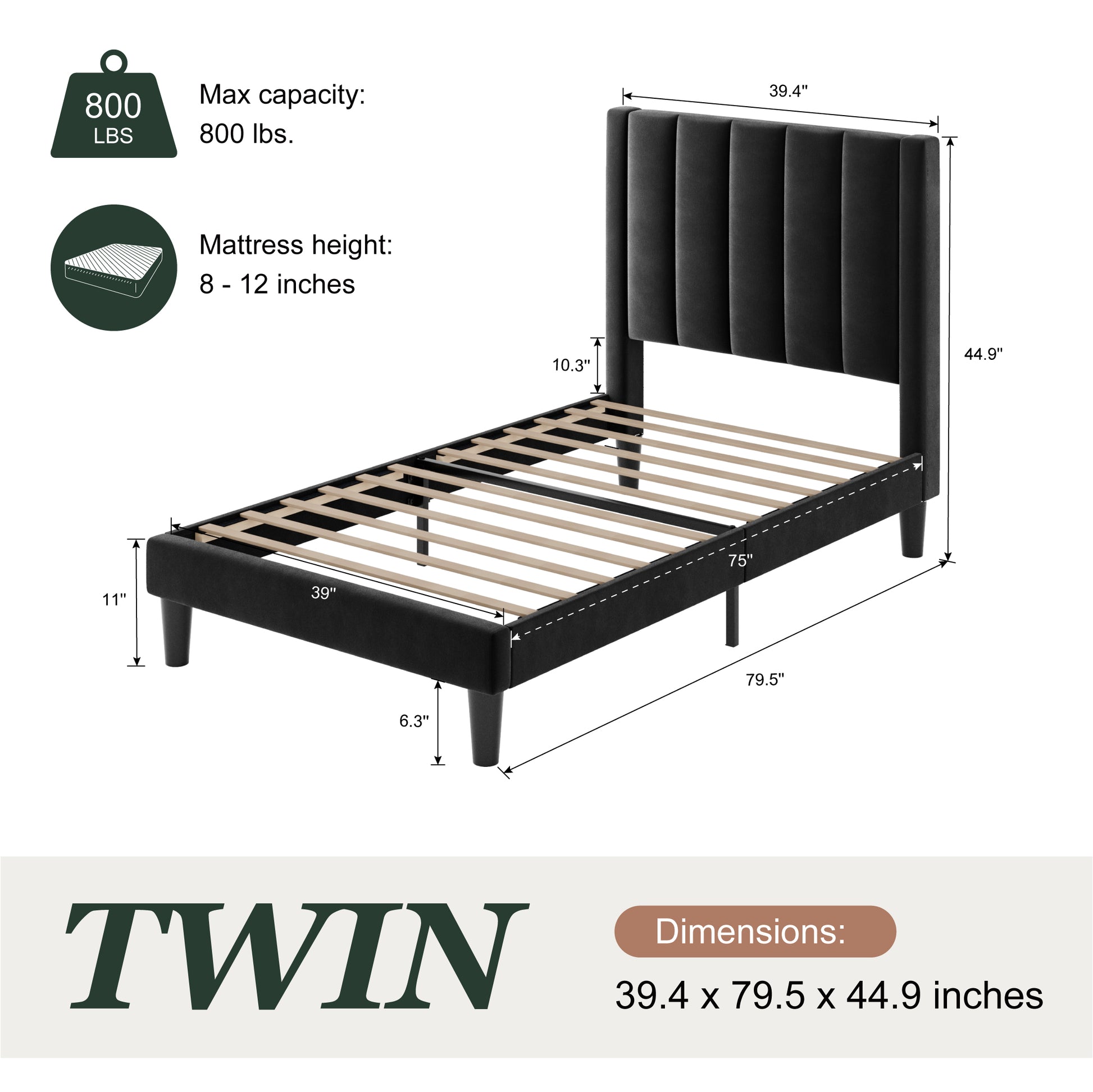 Amolife Twin Size Bed Frame with Velvet Channel Headboard