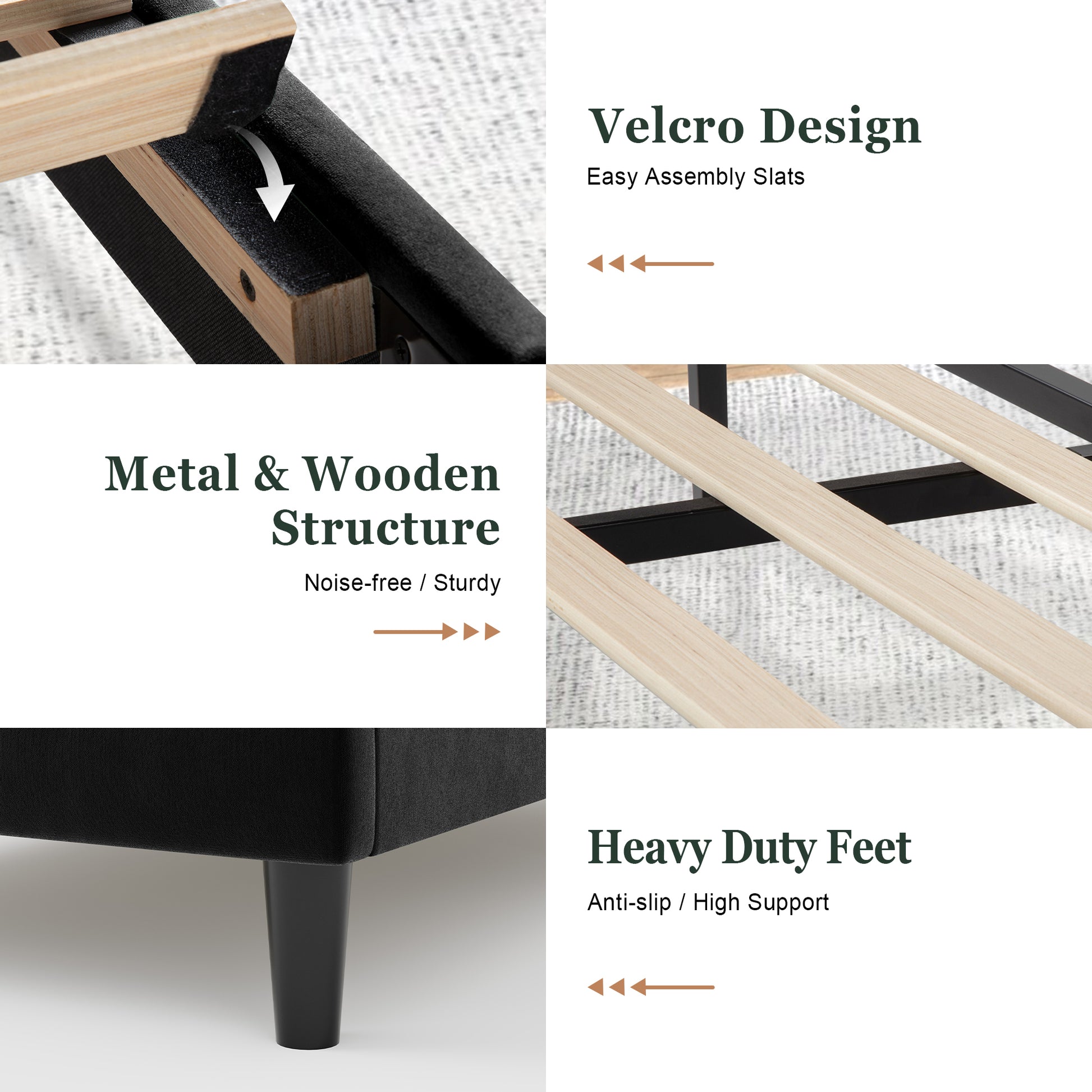 - Elegant Design: The upholstered headboard is wrapped in soft, skin-friendly, odorless velvet, providing supportive comfort while relaxing.