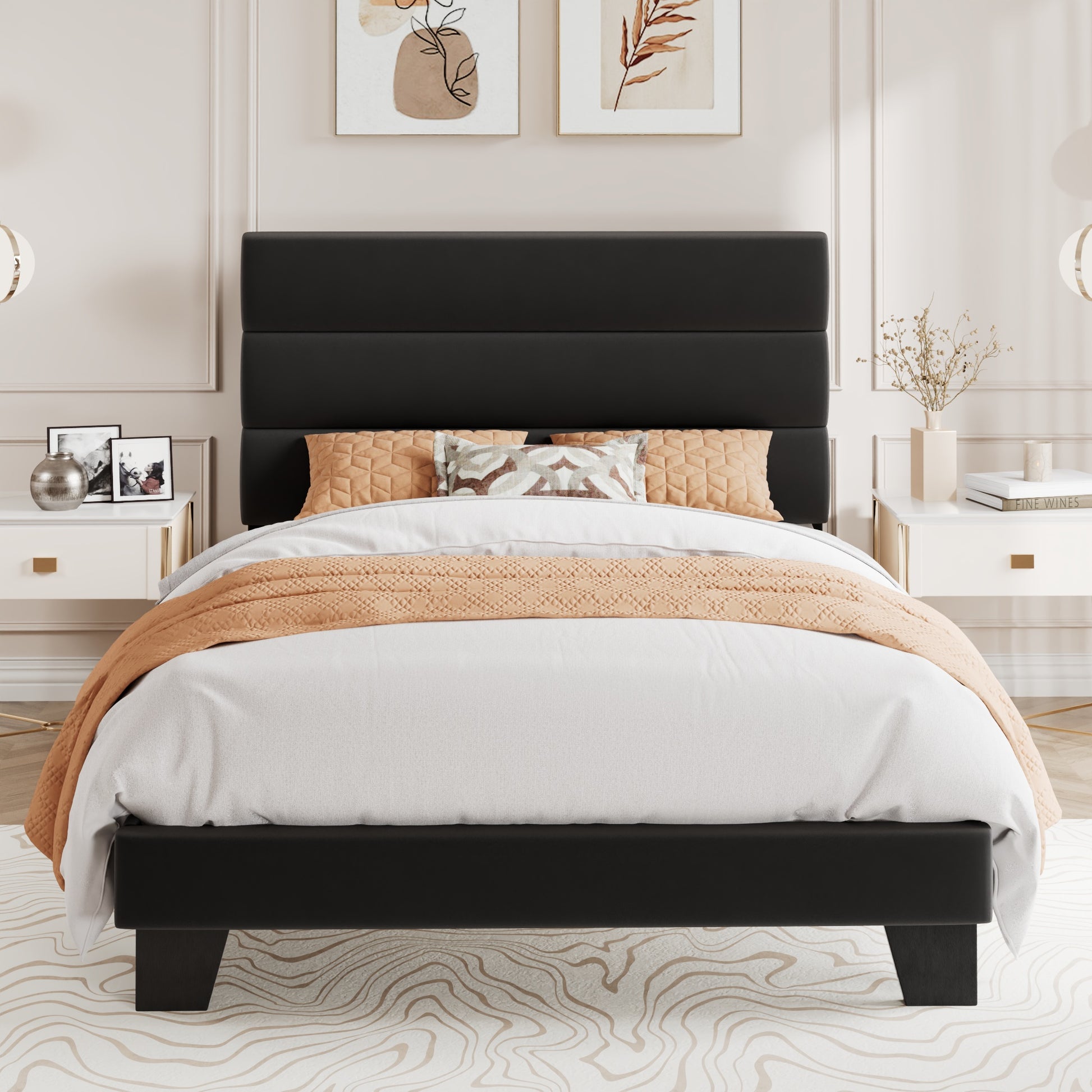 Amolife Twin Size Platform Bed Frame with Upholstered Slat Headboard, No Box Spring Needed