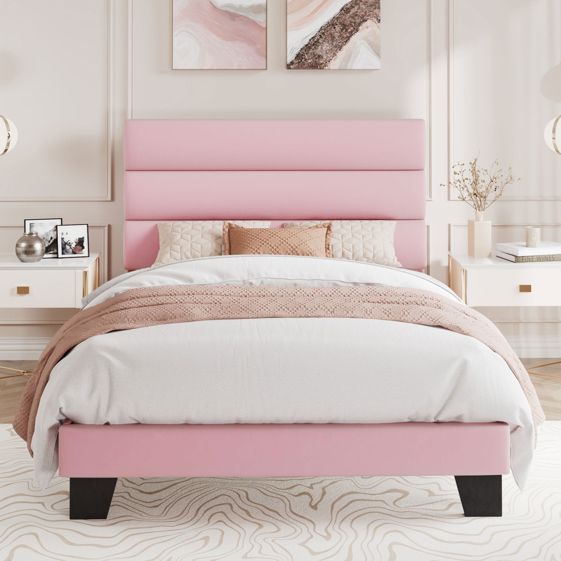 - Sturdy, Durable Build: Crafted from robust steel, the frame supports up to 800 lbs. The reinforced center legs and rigid slats prevent sagging, while the velvet-wrapped (linen-wrapped) headboard adds stability. Its rigid structure stays intact over time, resisting warping or wobbling.