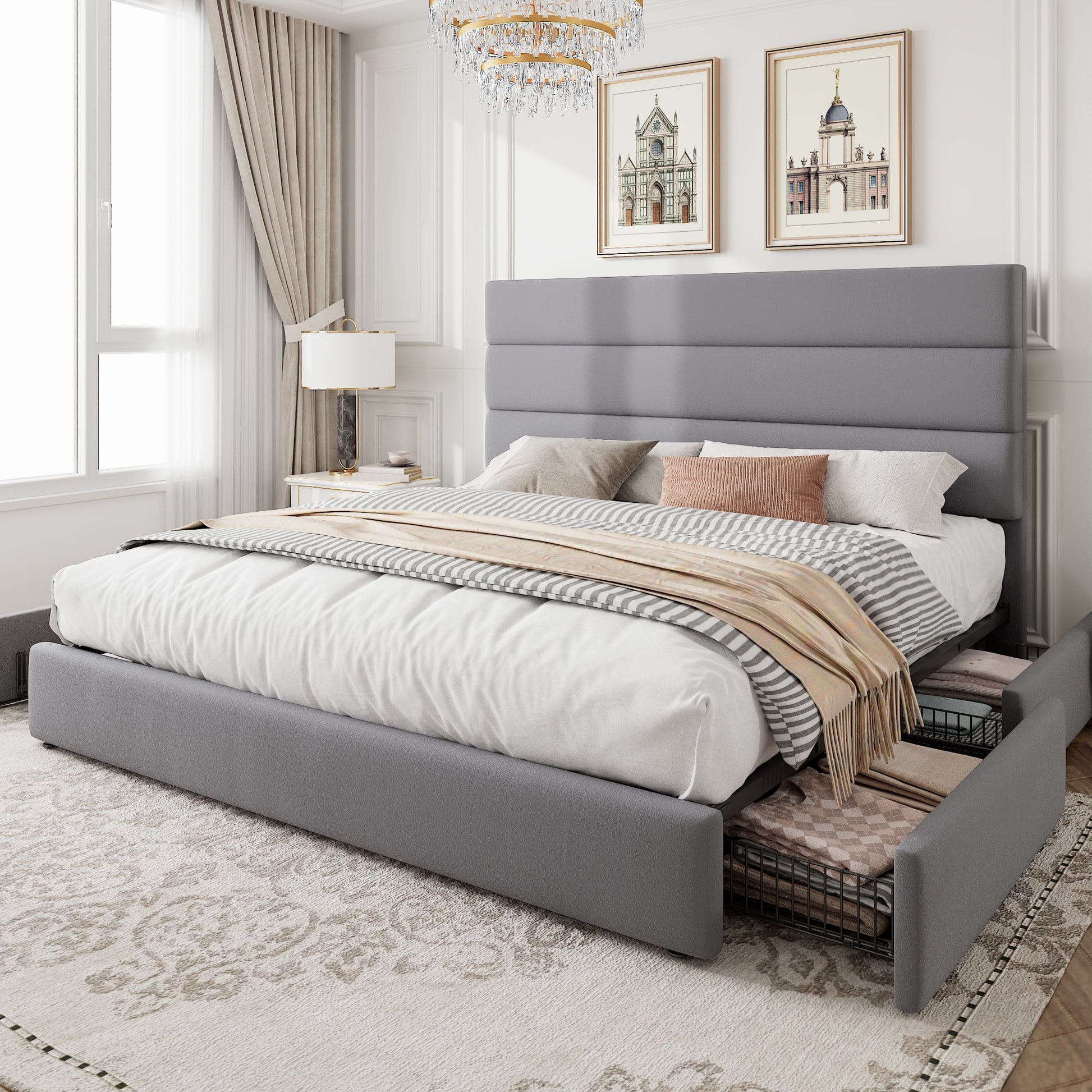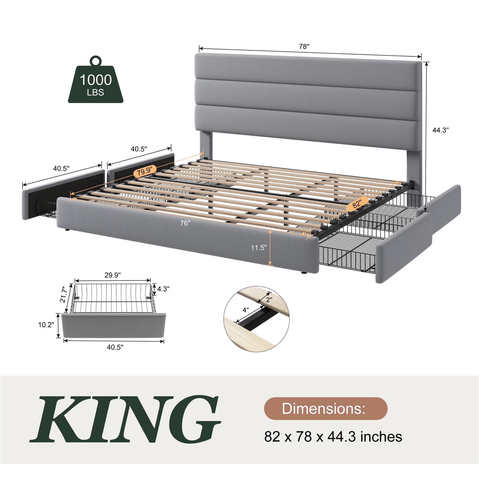 - 4 Large Drawers: Designed with four large-capacity drawers with smooth-gliding wheels beneath the frame, this bed maximizes storage without adding bulk—perfect for organizing linens, clothes, or seasonal items neatly.