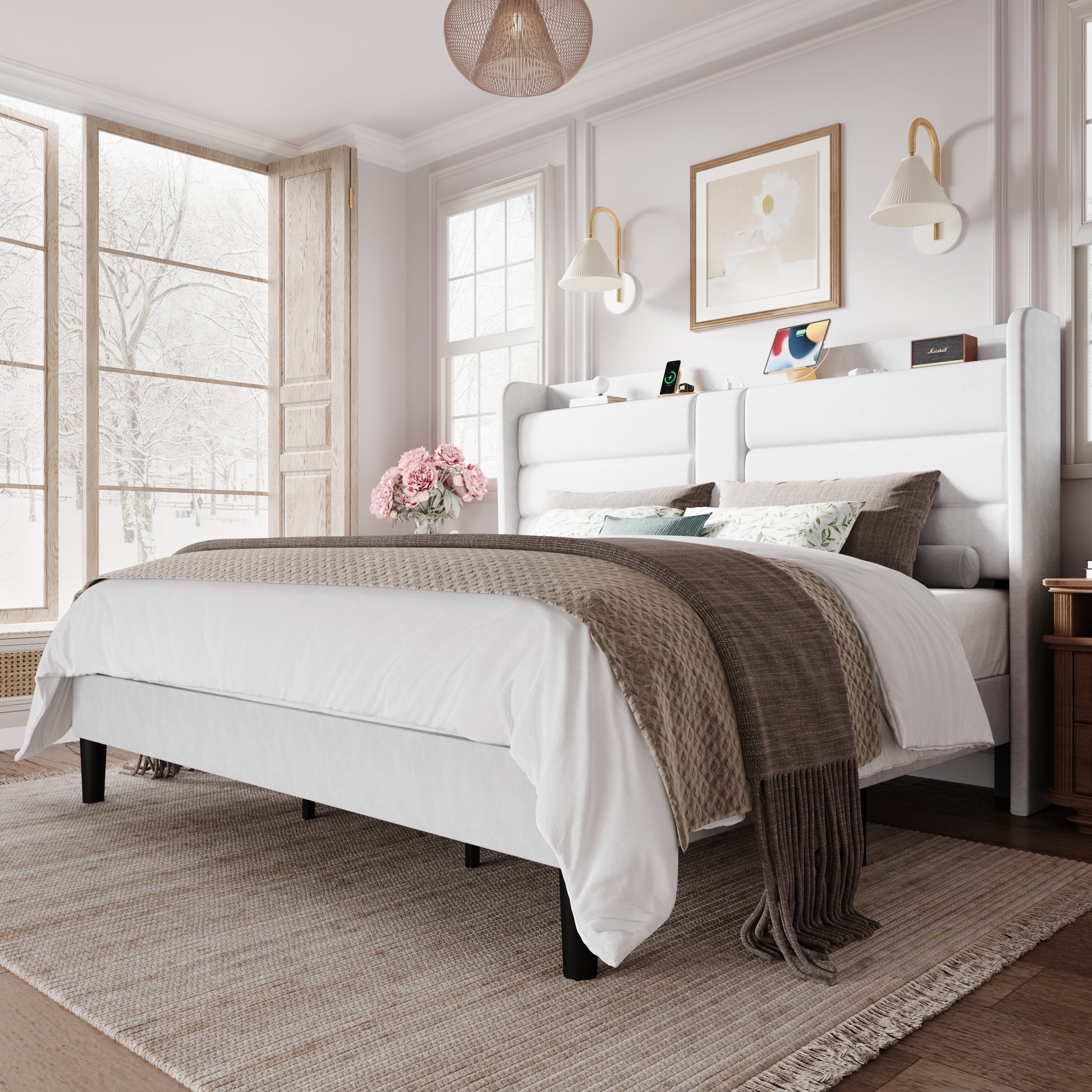 - Built-in USB Charging Ports: Stay connected while you rest with USB charging ports conveniently placed on the headboard. Charge your phone, tablet, or other devices overnight without needing extra outlets or messy cables. This thoughtful design ensures easy access to power, keeping your essentials within reach and your bedside clutter-free.