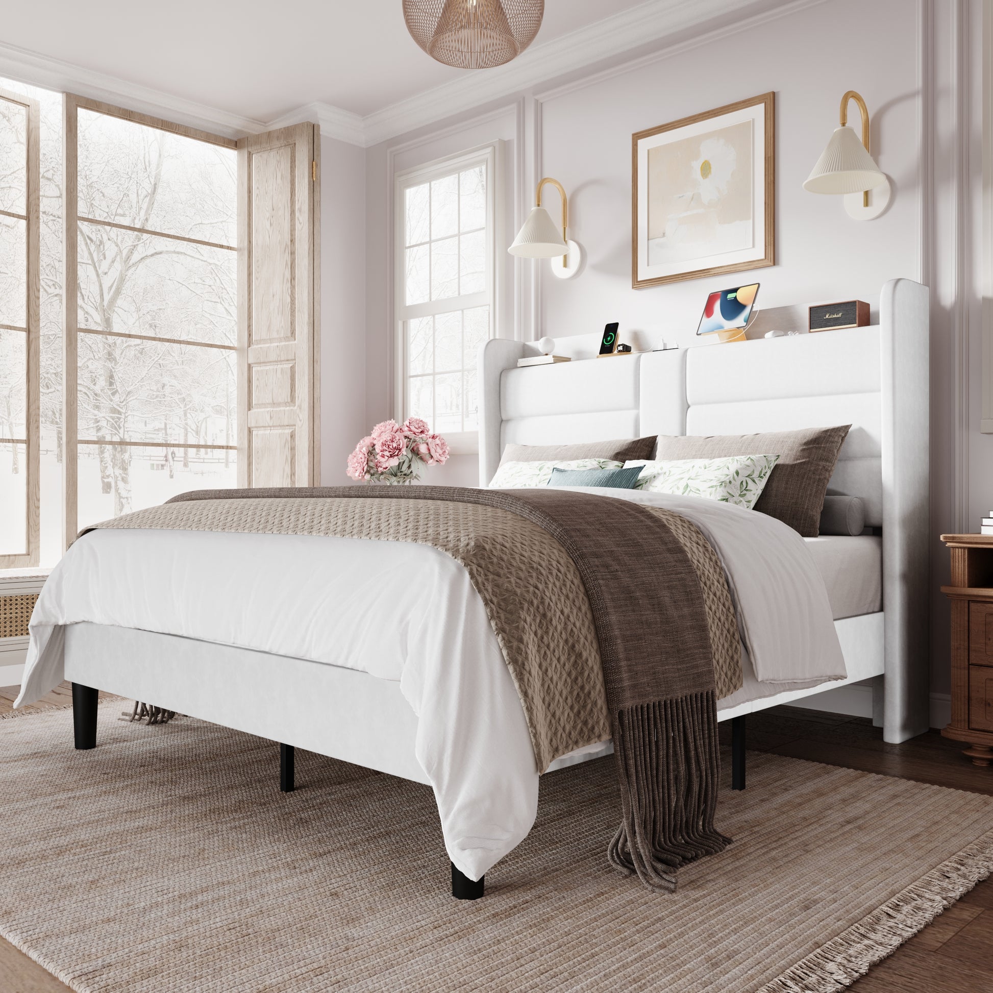- Wingback Headboard: The stylish wingback headboard offers both comfort and function. Its padded design provides excellent back support for reading or relaxing in bed, while the side wings help keep your mattress securely in place and prevent slipping.