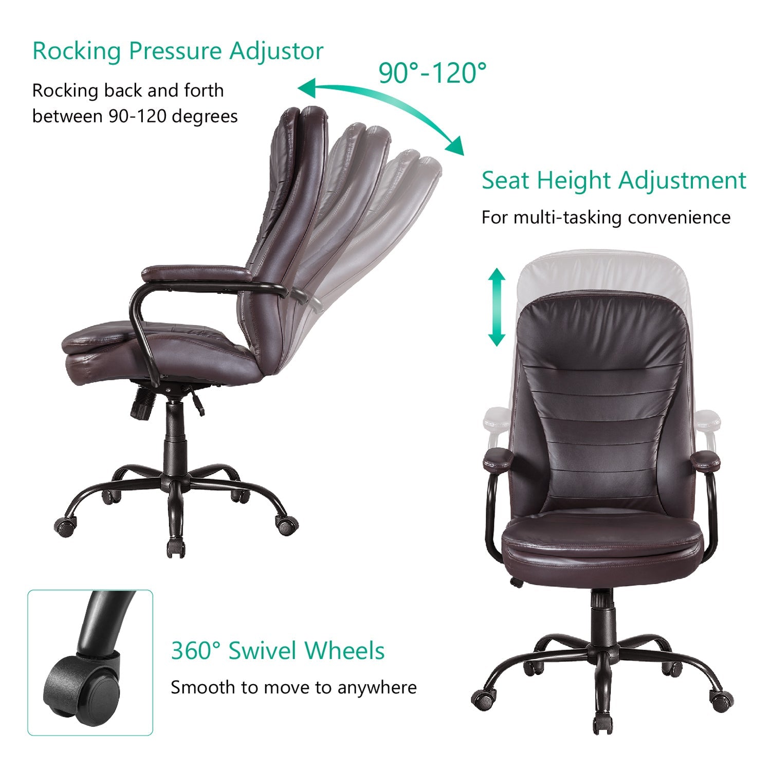 Big and Tall Office Chair Adjustable Ergonomic Home Desk Chair with Padded Armrests