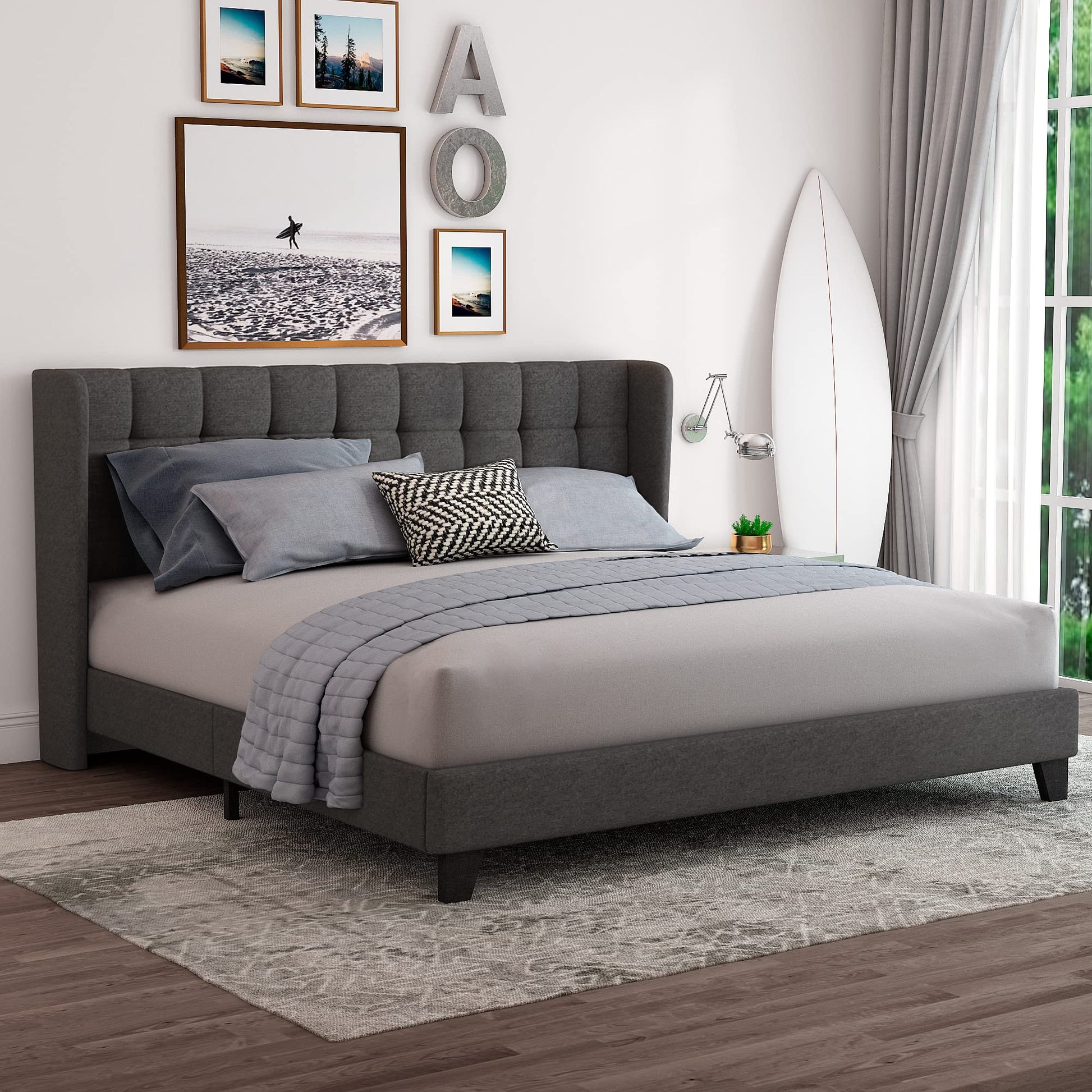 - Wingback Headboard: Has a linen-inspired fabric finish with buttonless square tufting for a classy look.Attached with beautiful wingback headboard,presents a special appearance,makes a stunningly chic addition to your bedroom.